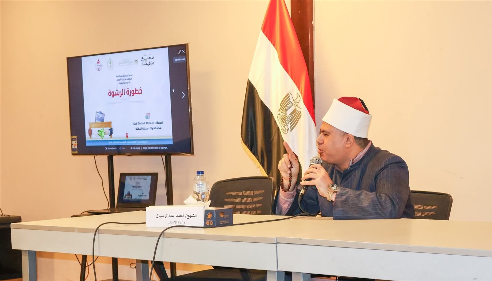 شاركت وزارة الأوقاف في الندوة التثقيفية التي نظمتها مكتبة مصر العامة بعنوان: "خطورة الرشوة"، وذلك في إطار التعاون المشترك لنشر الوعي المجتمعي وتعزيز القيم الأخلاقية ضمن فعاليات مبادرة "صحح مفاهيمك"، برعاية الدكتور أسامة الأزهري، وزير الأوقاف.