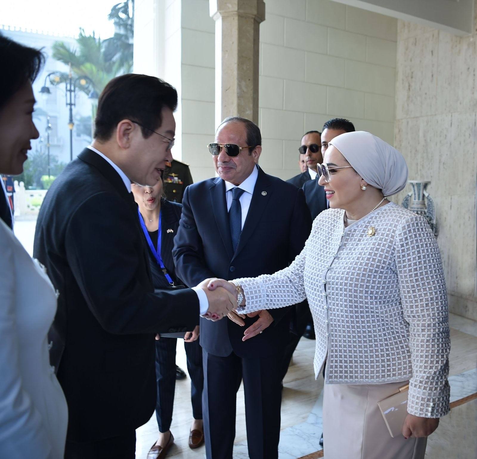 رحّبت السيدة انتصار السيسي، قرينة رئيس الجمهورية، بالسيدة كيم هي-كيونج، قرينة رئيس جمهورية كوريا الجنوبية.