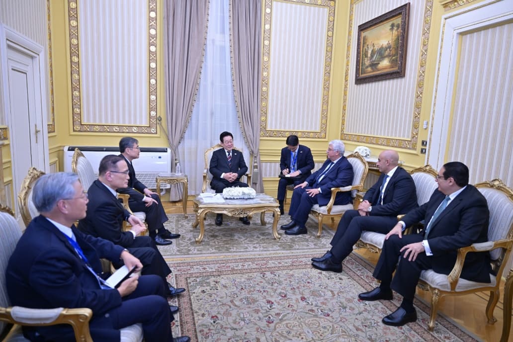 وقال الرئيس الكوري، إن هناك العديد من نماذج التعاون بين مصر كوريا تتمثل في القطارات الكهربائية لنقل السكان داخل مصر، والهواتف المحمولة، مؤكدًا حرصه علي زيادة الصادرات والعمل علي تحقيق الانتاج المشترك من خلال التوصل إلي اتفاقية شراكة اقتصادية شامل بين كوريا ومصر، مؤكدًا أنه بفضل استيراد مصادر الطاقة من النفط والغاز من دول الشرق الأوسط أصبحت كوريا من أقوى اقتصاديات العالم، لافتًا إلى توفير عدد من المنح الدراسية للطلاب المصريين للدراسة داخل كوريا والحصول علي درجة الماجستير في تكنولوجيا المعلومات والاتصال وبرامج التدريب.