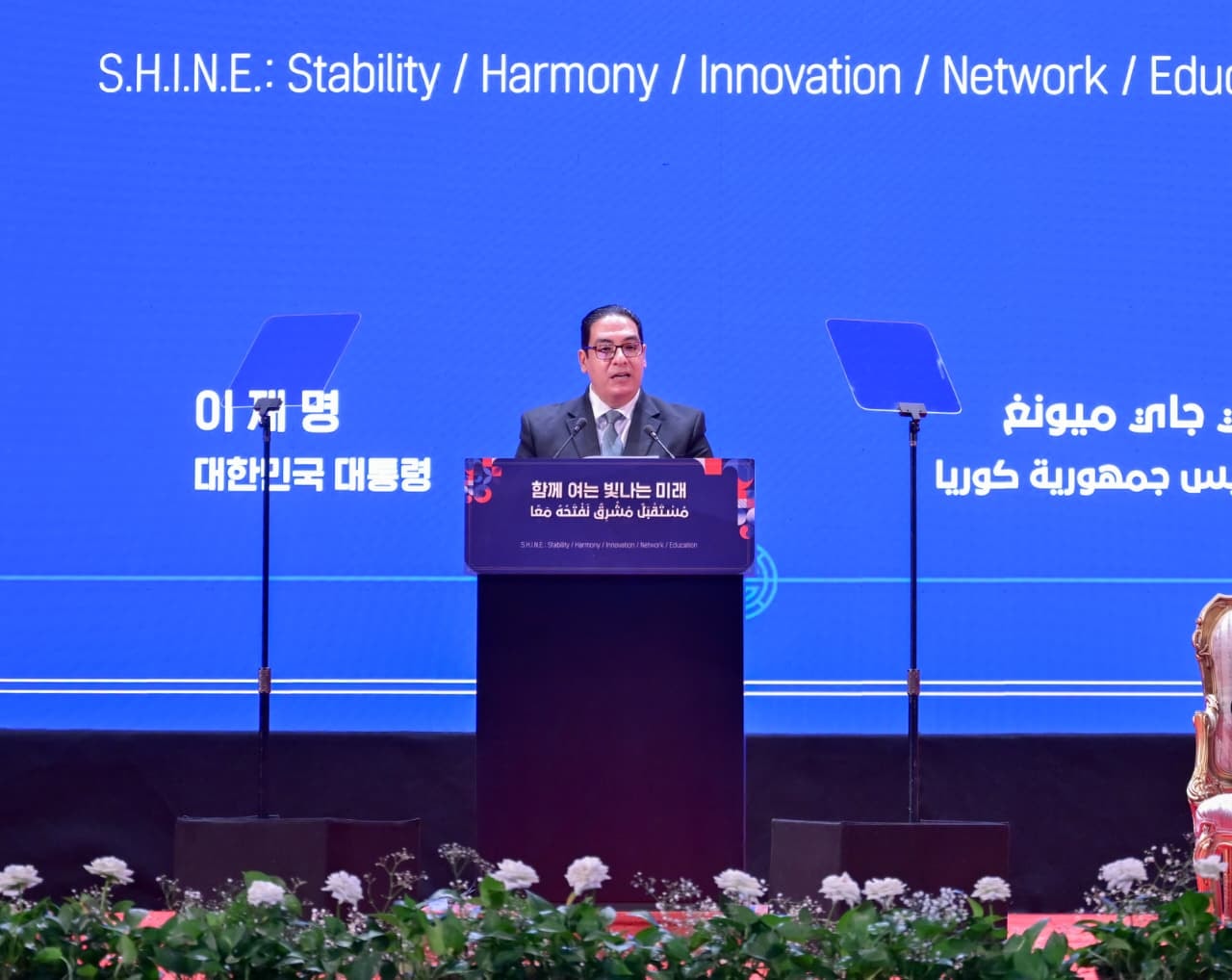 كما أشار الرئيس الكوري إلى مبادرة "SHINE" والتي تشمل ثلاثة مجالات تتمثل في السلام والازدهار والثقافة، وفتح مستقبل مشرق للشرق الاوسط وشبة جزيرة كوريا لتحقيق الاستقرار، وأن الحكومة الكورية ساهمت بشكل مباشر في إرساء السلام داخل الشرق الأوسط، معلنًا عن تقديم كوريا مساهمات بمقدار 10 ملايين دولار للهلال الأحمر المصري، واتفاقه مع الرئيس عبد الفتاح السيسي علي المشاركة في إعادة الاعمار داخل قطاع غزة، مؤكدًا حرصه على تحقيق مستقبل أكثر ازدهارًا من خلال الابتكار المشترك ودفع التنمية الاقتصادية.