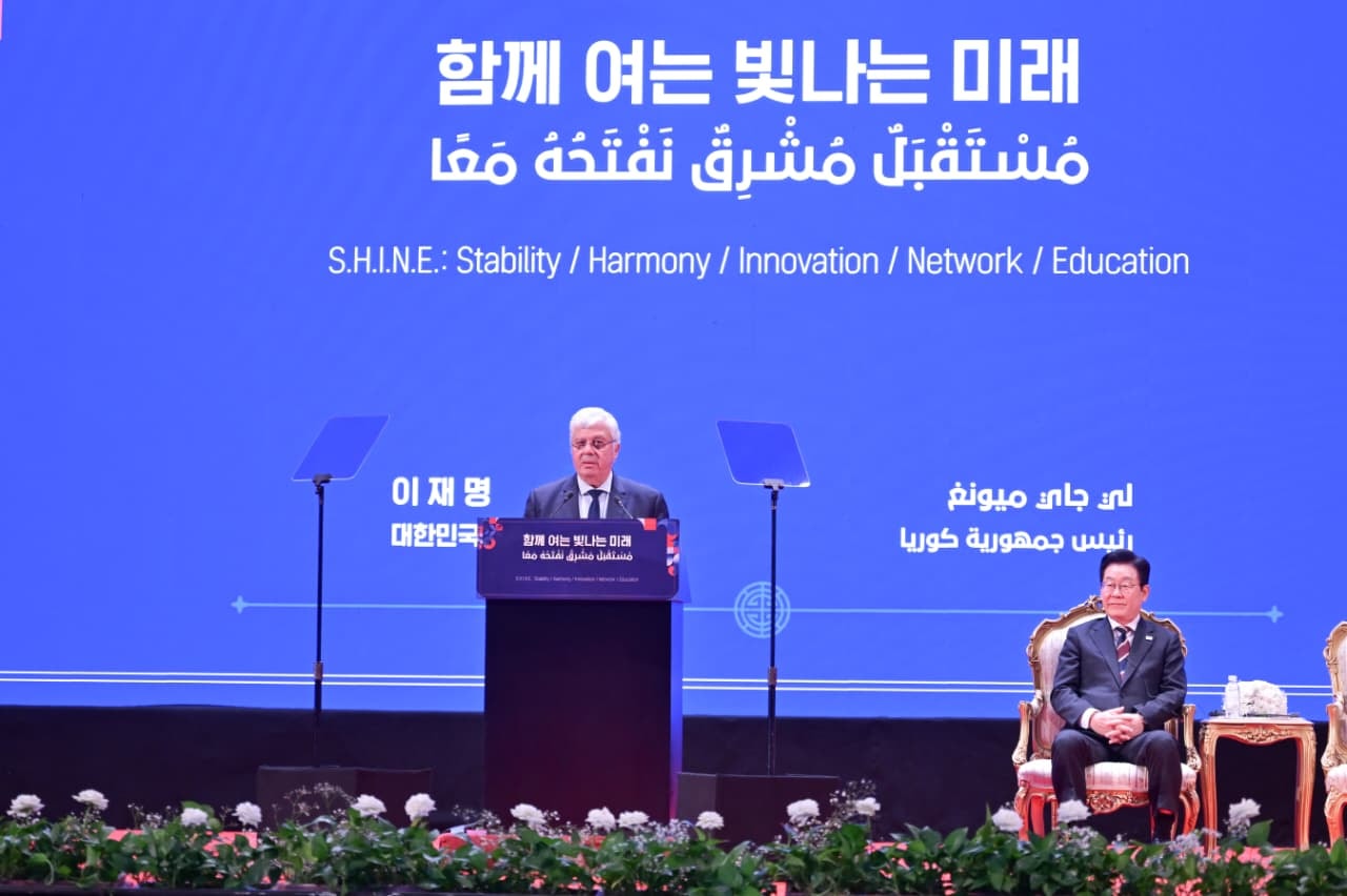 وفى كلمته رحب الدكتور أيمن عاشور وزير التعليم العالي والبحث العلمي، بالرئيس الكوري لي جاي ميونغ في مصر في رحاب جامعة القاهرة العريقة التي كانت ولا تزال منارة للعلم ورمزًأ للتواصل بين الحضارات والشعوب، مؤكدًا أن هذه الزيارة ليست مجرد زيارة رسمية فحسب بل هي رسالة صادقة تجسد عمق العلاقات المصرية الكورية، وتؤكد الرغبة المشتركة للبلدين في تطوير التعاون في مجالات التعليم العالي، والبحث العلمي، والابتكار، والصناعة والتكنولوجيا.