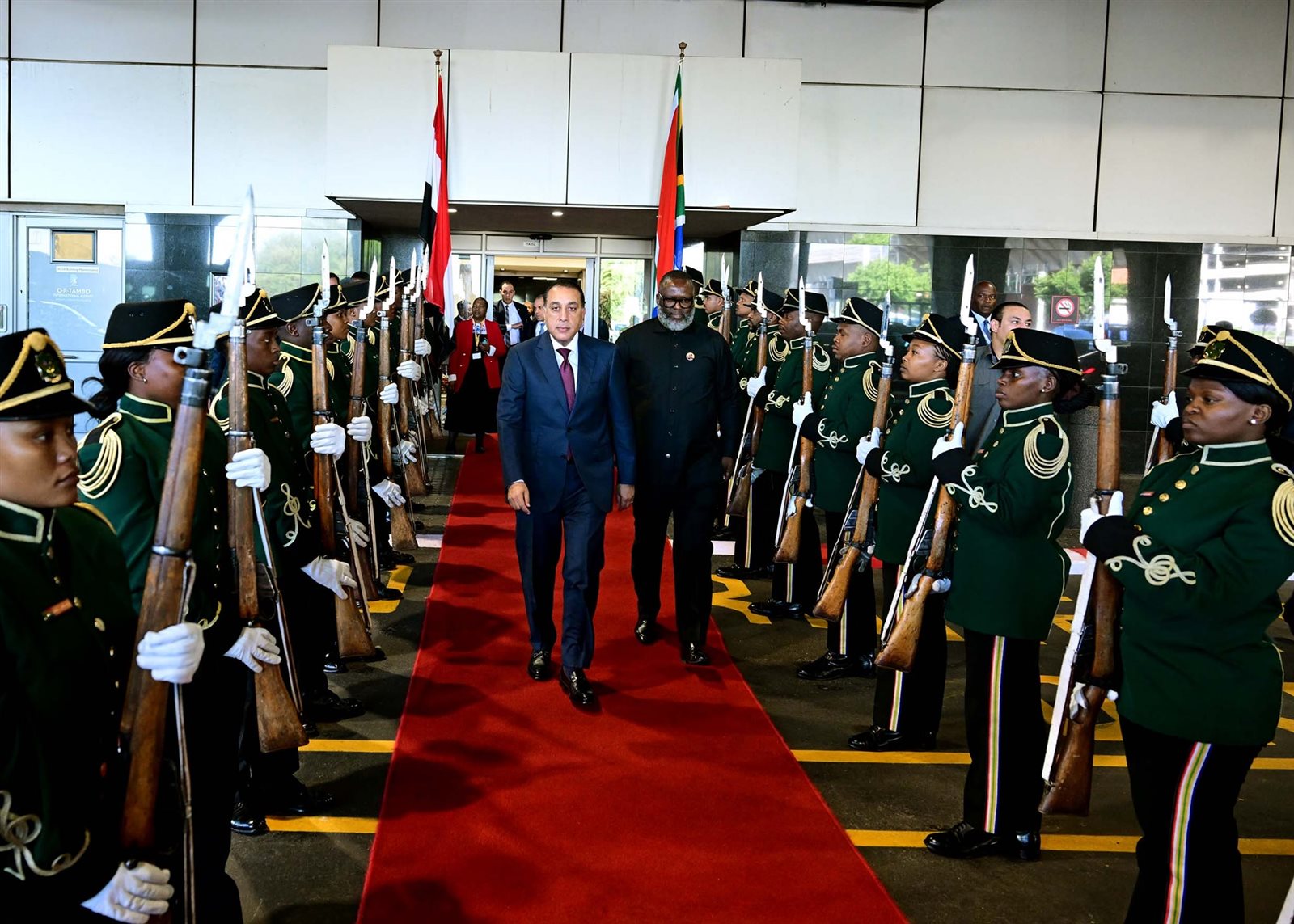 وكان في استقبال مدبولي والوفد المرافق له، كل من: إنكوسي مزامو بوتيليزي، وزير إدارة الخدمة العامة الجنوب إفريقي، والسفير أحمد علي شريف، سفير مصر لدى جنوب إفريقيا.