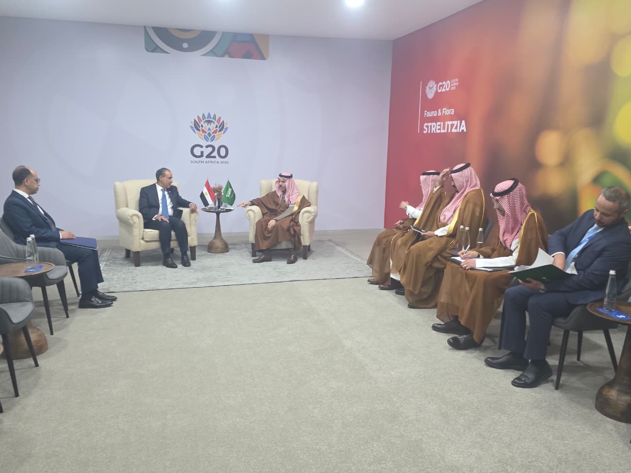 التقى الدكتور بدر عبد العاطي وزير الخارجية والهجرة وشئون المصريين بالخارج، اليوم السبت، مع الأمير فيصل بن فرحان بن عبد الله آل سعود وزير خارجية المملكة العربية السعودية، وذلك على هامش أعمال قمة مجموعة العشرين في مدينة جوهانسبرج، حيث تناول اللقاء سبل تعزيز العلاقات الثنائية والتشاور حول مستجدات القضايا الإقليمية ذات الاهتمام المشترك.
