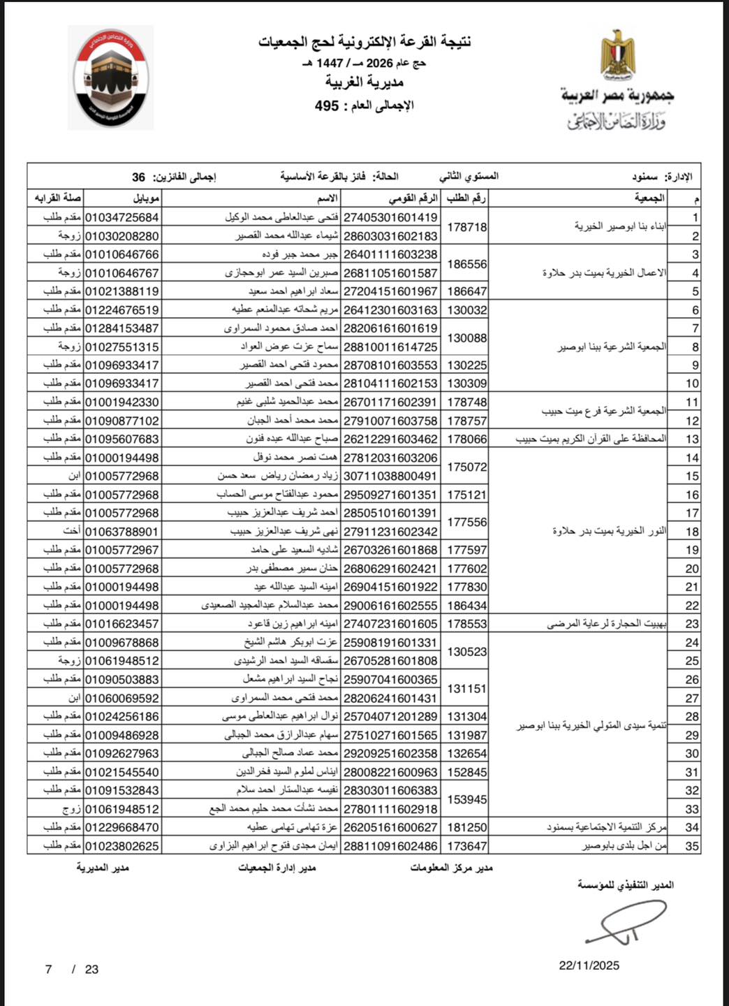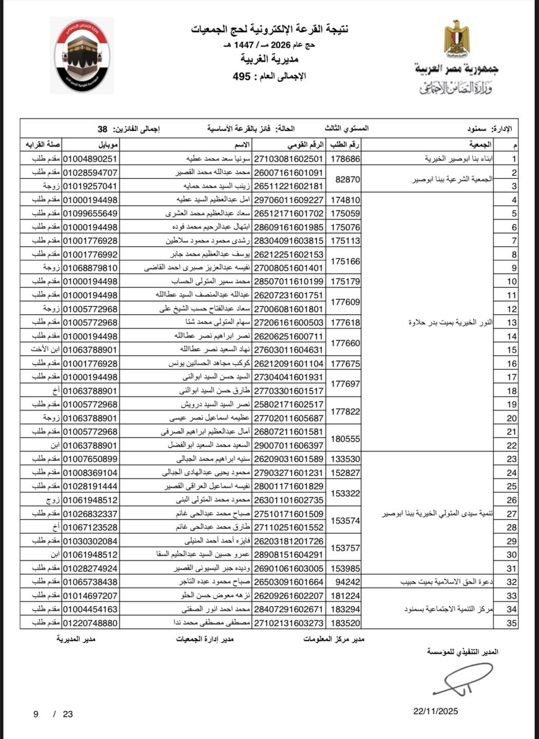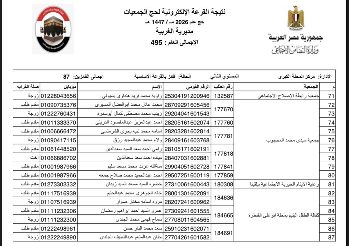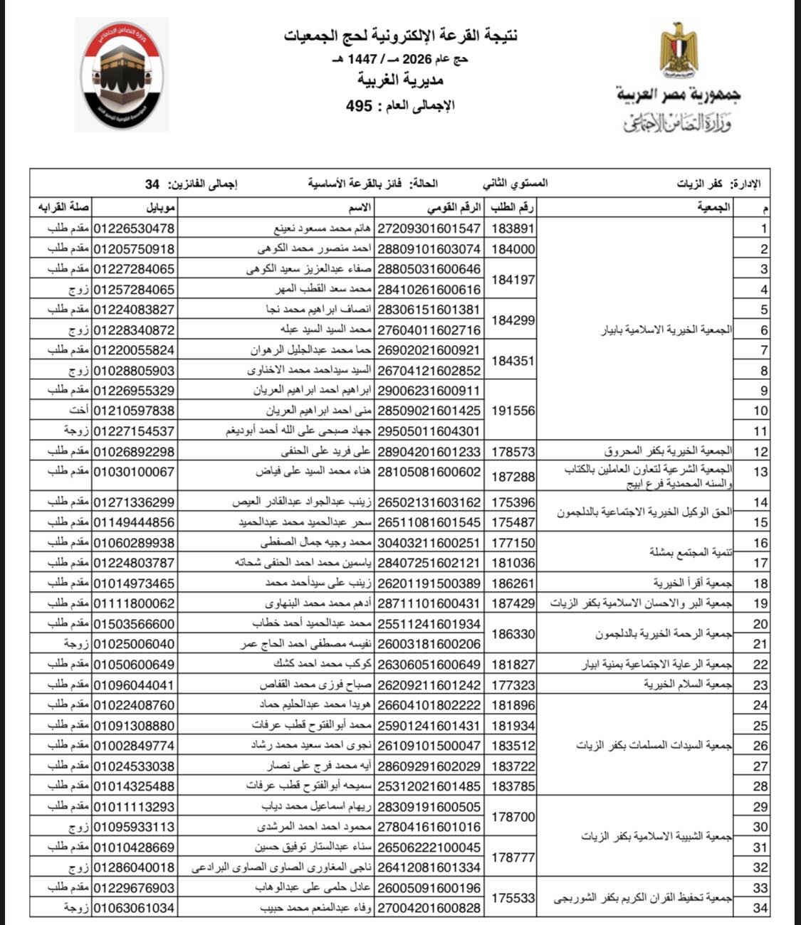 أسماء الفائزين في قرعة حج الجمعيات الأهلية بالغربية