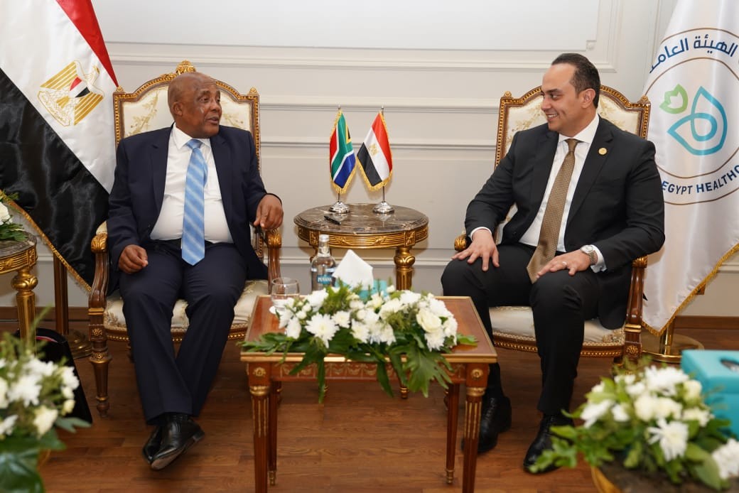 والتقى السبكي مع الدكتور باكيش آرون موتسواليدي، وزير الصحة بجمهورية جنوب إفريقيا، لمناقشة أطر التعاون المشترك في مجالات السياحة العلاجية والاستثمار الصحي بين البلدين.