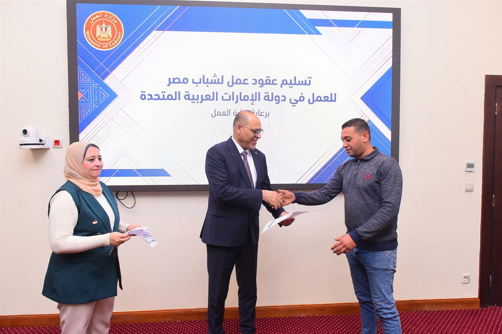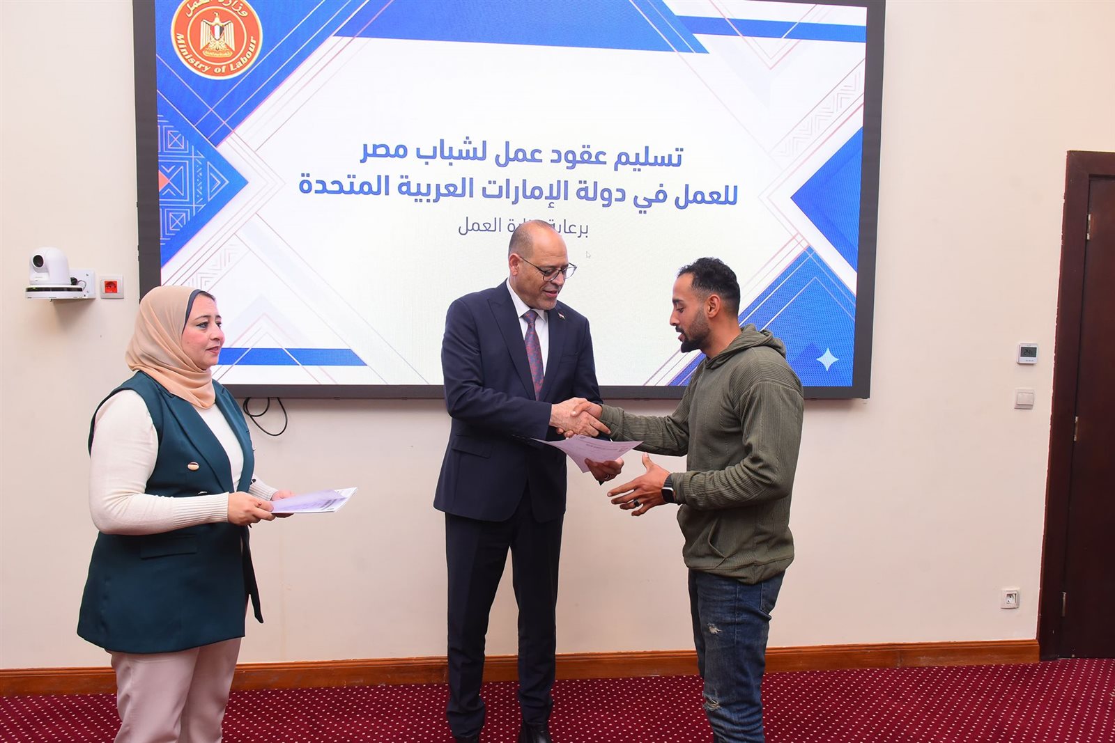 وزير العمل يسلم 25 عقد عمل جديد لشباب مصري للعمل بدولة الإمارات