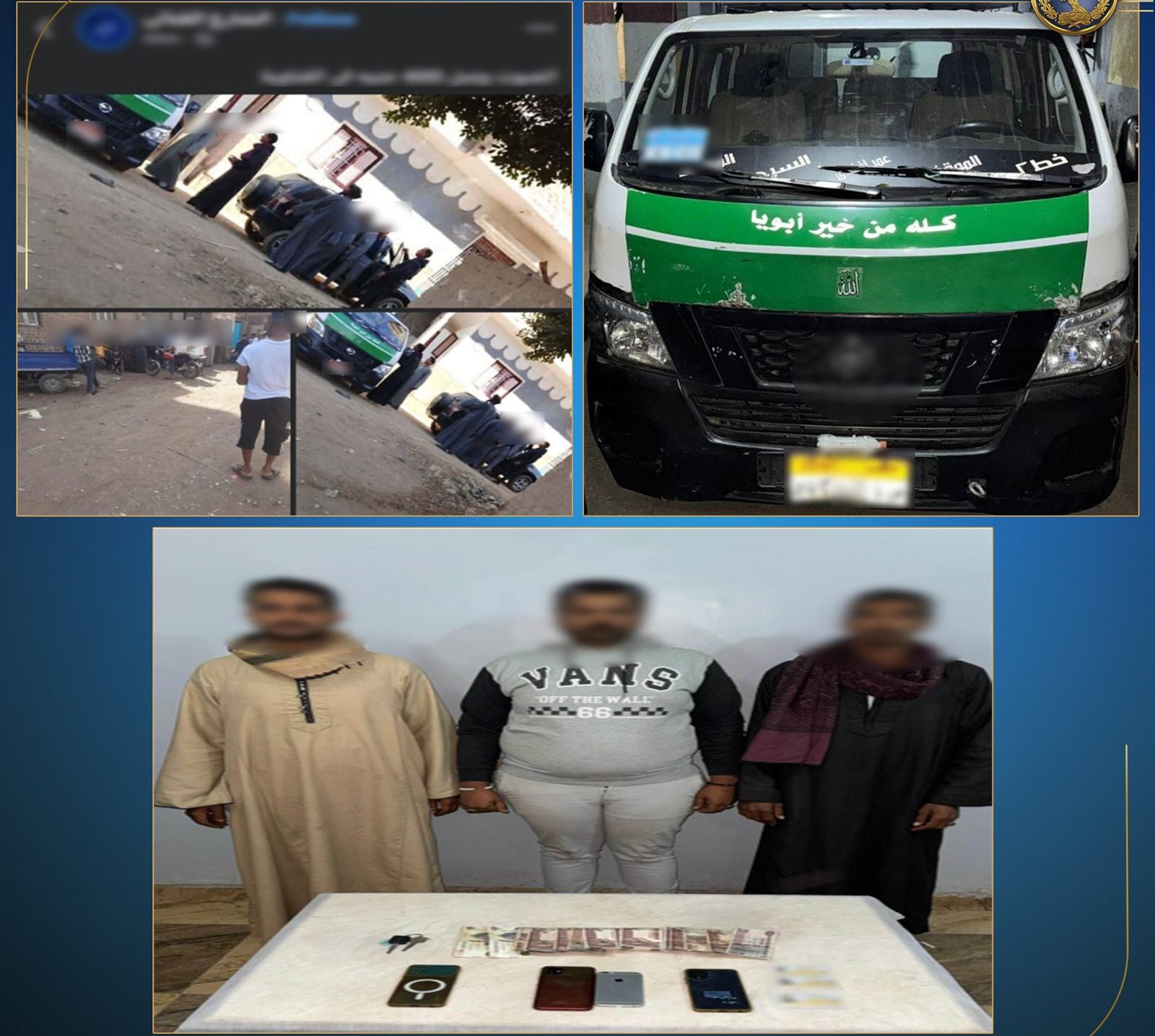 وبالفحص أمكن تحديد وضبط السيارة الظاهرة بالصور ومستقليها (3 أشخاص"مرتكبى الواقعة")، وبمواجهتهم أقروا بارتكاب الواقعة على النحو المشار إليه.