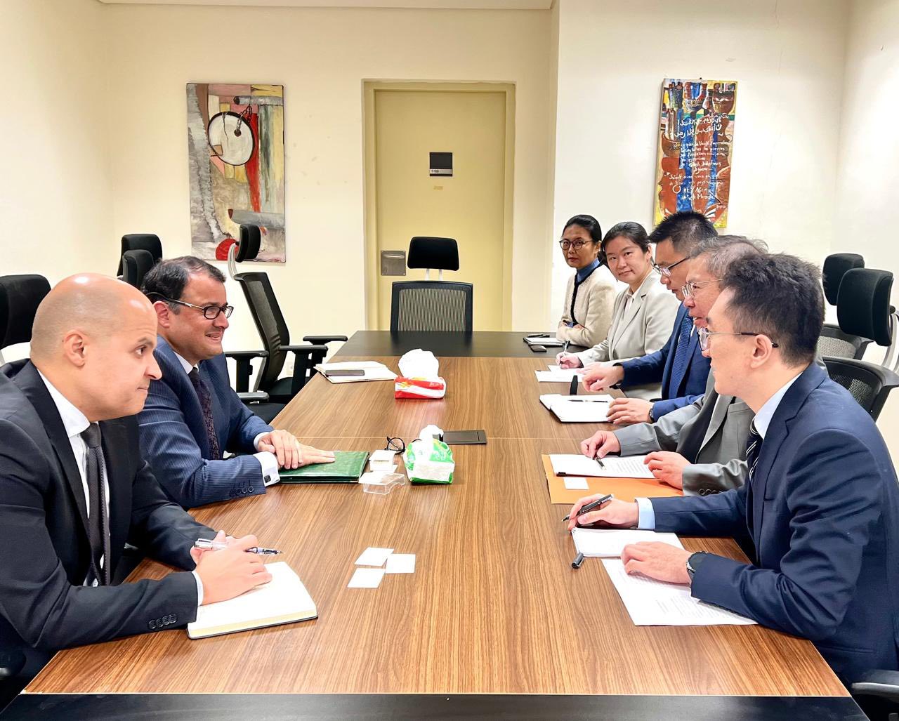 بحث السفير كريم شريف مساعد وزير الخارجية للشئون الإفريقية، مع السفير هو تشانجتشون المبعوث الصيني الخاص للقرن الإفريقي بمقر وزارة الخارجية بالعاصمة الجديدة، تطورات الأوضاع في منطقة القرن الإفريقي والبحر الأحمر.