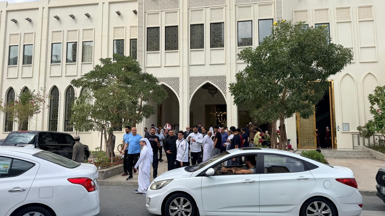 بعثة بيراميدز تؤدي صلاة الجمعة في أحد فنادق مدينة لوسيل بالدوحة
