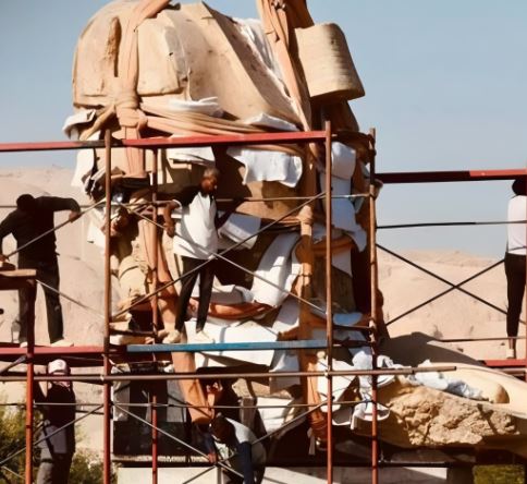 وأكد مصدر في البعثة الأوروبية المشتركة، أن التمثال، الذي يقف أمام الصرح الثاني، يخضع لعمليات تركيب دقيقة بعد عقود من تفتته، حيث يبلغ وزنه نحو 60 طنًّا، وهو مصنوع من «الألباستر» النادر، ولا يزال يحتفظ ببقايا من ألوانه الأصلية، ما يجعله من أبرز اكتشافات السنوات الأخيرة.