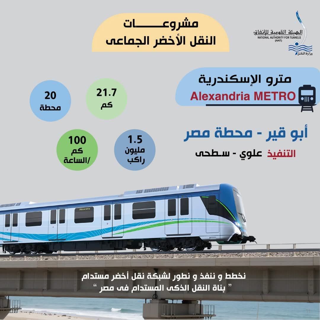 - المشروع بطول 21.7 كم من محطة سكة حديد أبو قير وحتى محطة مصر