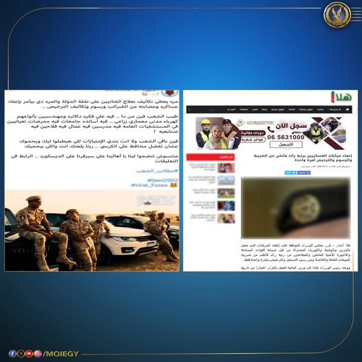 نفى مصدر أمني، جملةً وتفصيلاً، صحة ما تم تداوله بأحد الحسابات التابعة لعناصر جماعة الإخوان الإرهابية الهاربة بالخارج، بمواقع التواصل الاجتماعي، والمتضمن الزعم بصدور قرار بإعفاء مركبات الضباط من الضرائب والرسوم وتكاليف التراخيص.