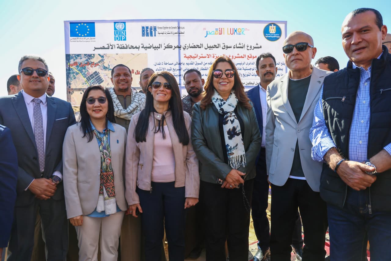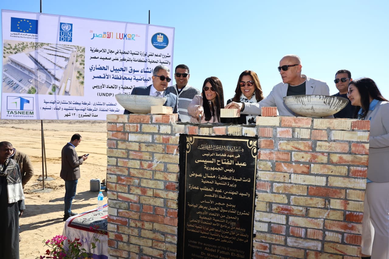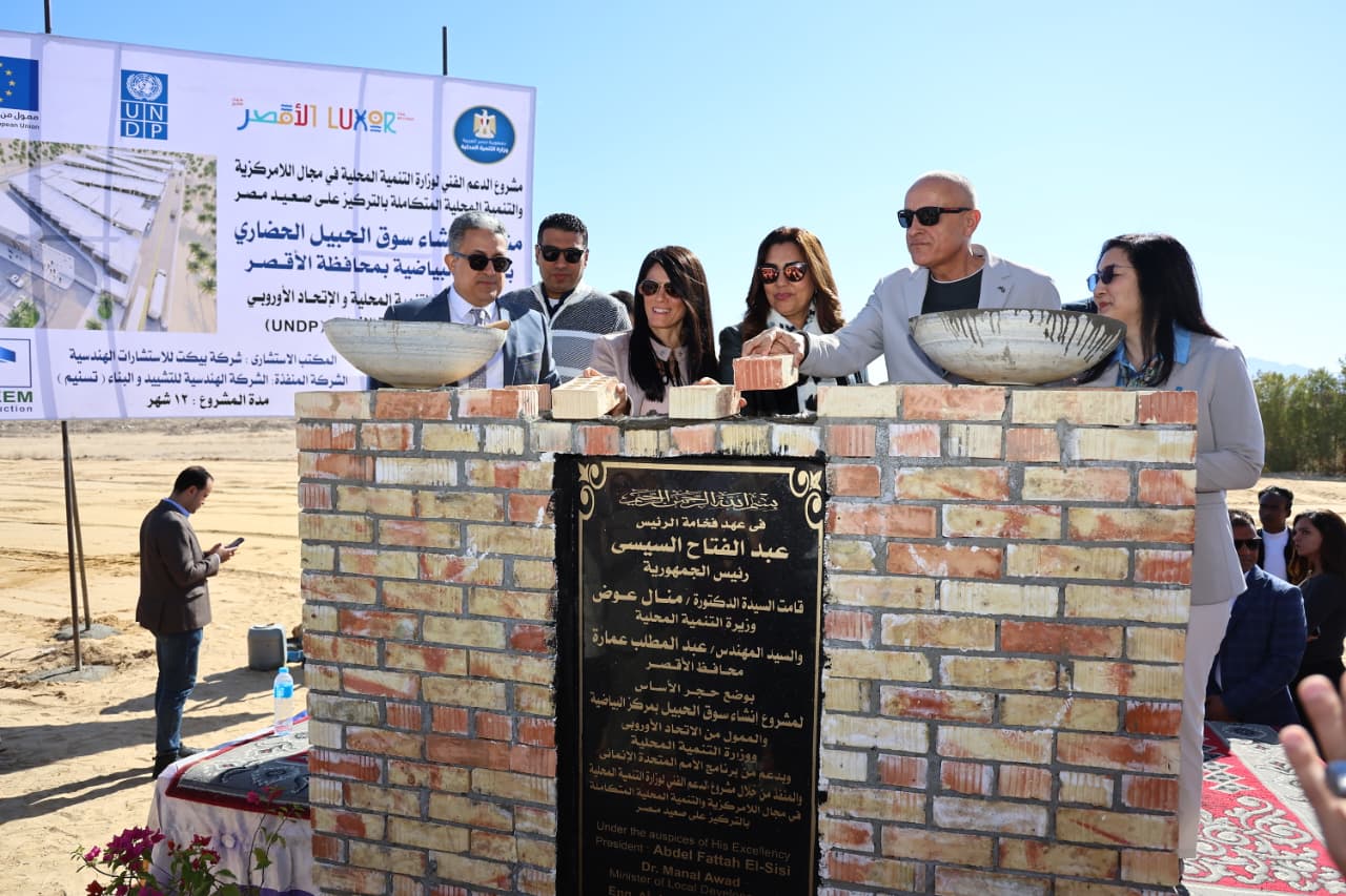 وزيرتا التخطيط والتنمية المحلية تضعان حجر الأساس للسوق الحضاري الجديد بقرية الحبيل بالأقصر