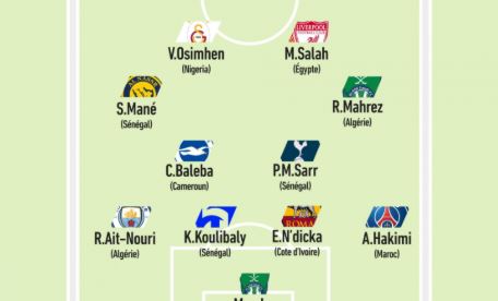وفي خط الوسط تواجد، بابي سار لاعب منتخب السنغال ونادي توتنهام الإنجليزي، وكارلوس باليبا لاعب منتخب الكاميرون وبرايتون الإنجليزي، ورياض محرز لاعب منتخب الجزائر ونادي الأهلي السعودي، وساديو ماني لاعب منتخب السنغال ونادي النصر السعودي.