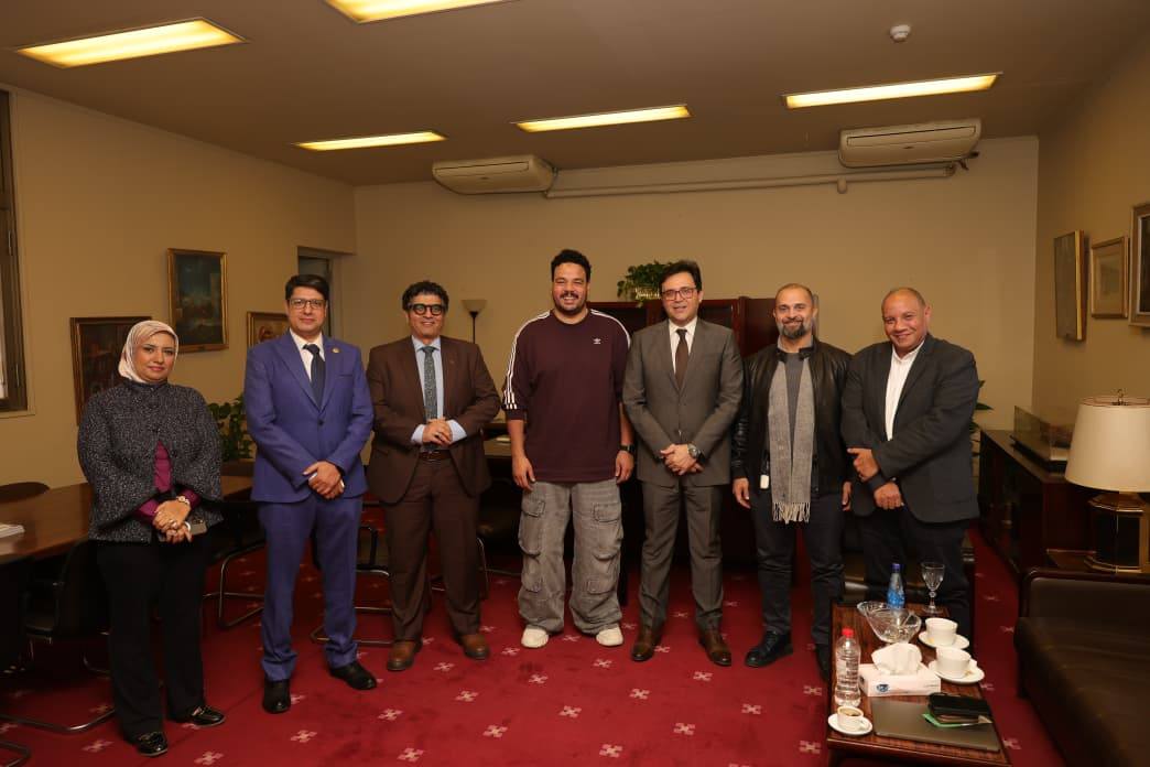 وتناول اللقاء سبل تقديم أعمال فنية تسهم في التعريف بالمنتج الثقافي المصري وتوسيع قاعدة المستفيدين منه، لا سيما بين فئات الشباب، بما يعزز من دور الفنون في بناء الوعي وترسيخ قيم الإبداع والتجديد. كما جرى بحث إمكانية تقديم عمل مسرحي كوميدي يشارك فيه عدد من النجوم الشباب، بهدف جذب جمهور جديد إلى المسرح وتقديم محتوى فني معاصر يجمع بين المتعة والقيمة الفنية.