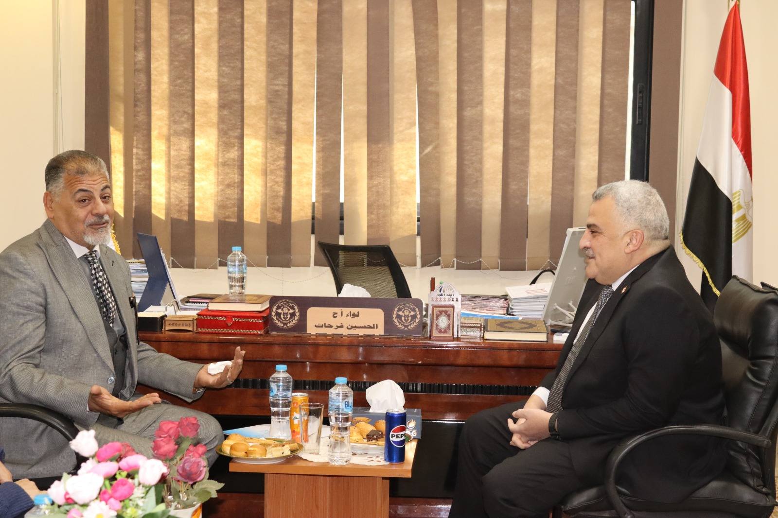 استقبل اللواء أ.ح الحسين فرحات، المدير التنفيذي لجهاز حماية وتنمية البحيرات والثروة السمكية، الدكتور محمد حمزة، عميد كلية الثروة السمكية بجامعة السويس، لبحث آليات تفعيل مذكرة التفاهم الموقعة بين الطرفين عام 2024، وذلك في إطار الرؤية الوطنية للدولة المصرية لتعزيز الأمن الغذائي وتطوير قطاع الثروة السمكية.