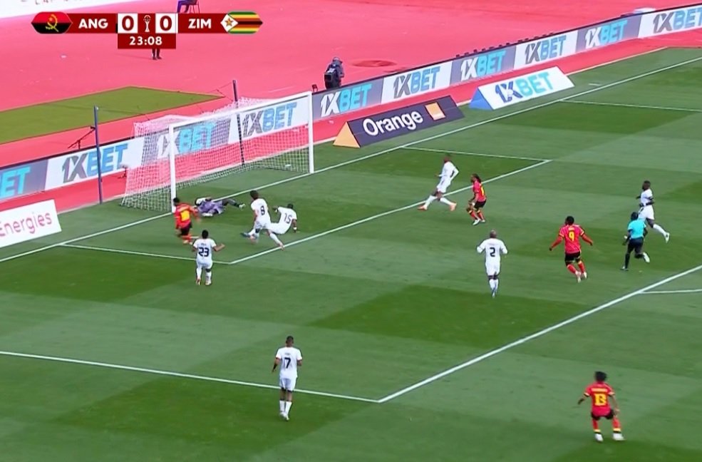ونجح منتخب أنجولا في افتتاح التسجيل خلال الدقيقة 24 عن طريق اللاعب جيبسون دالا، بعد أداء منظم وسيطرة نسبية على مجريات اللعب. وقبل نهاية الشوط الأول مباشرة، تمكن منتخب زيمبابوي من إدراك التعادل عن طريق موسونا في الدقيقة 45، مستفيدًا من ضغط هجومي أسفر عن هدف التعادل قبل التوجه إلى غرف الملابس.