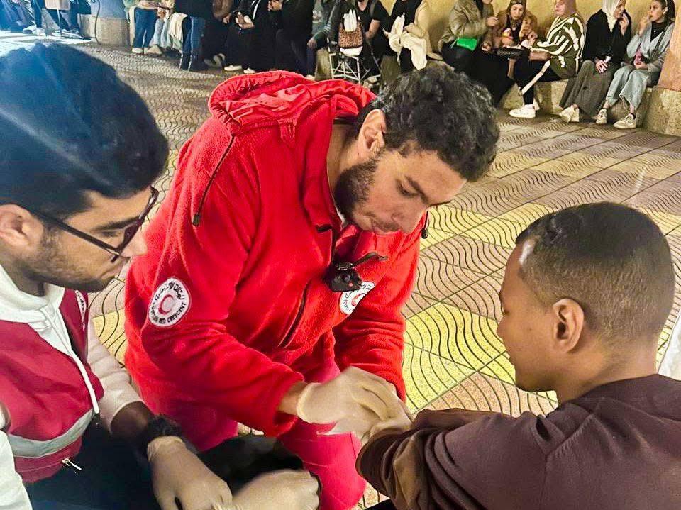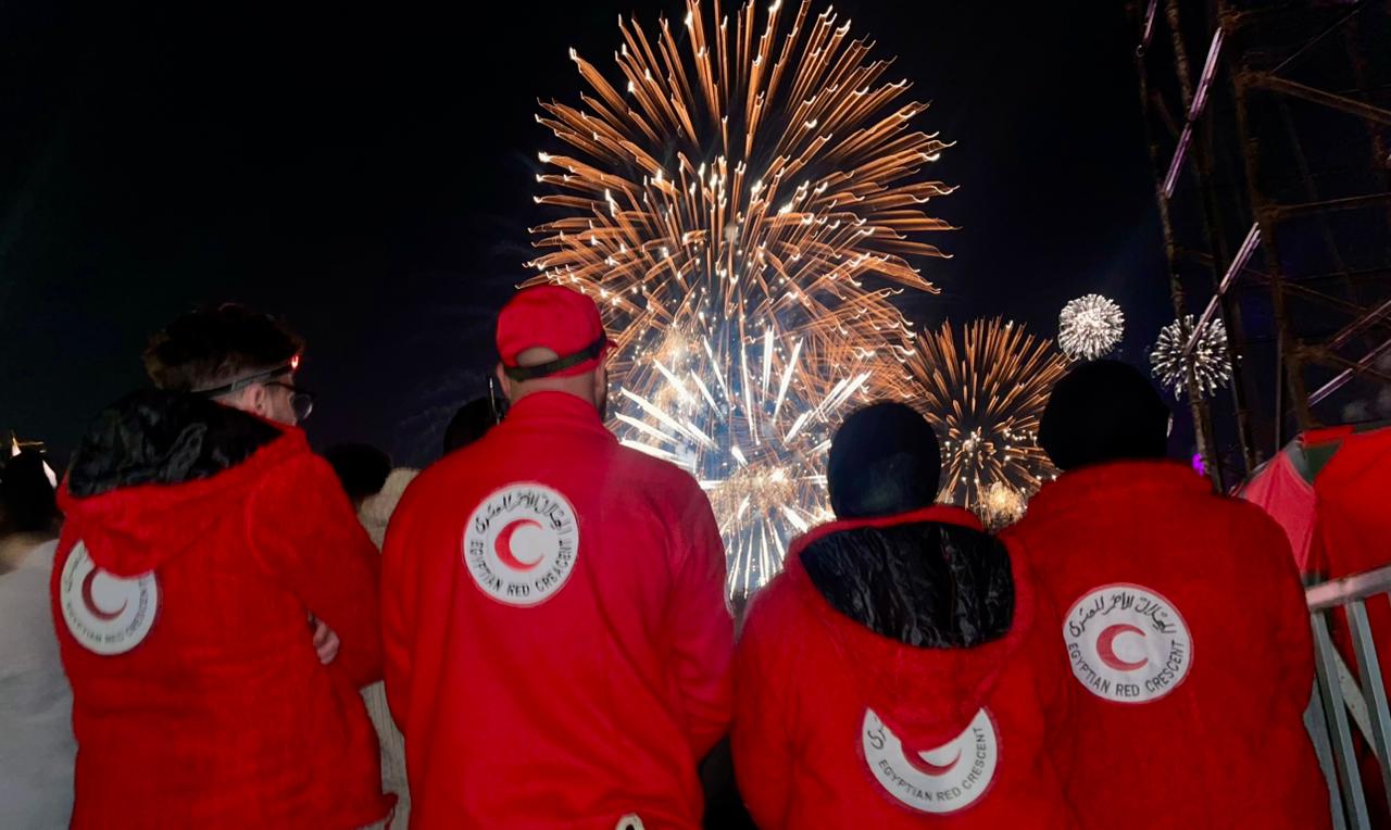 خلية عمل إنساني .. متطوعو الهلال الأحمر يقضون ليلة رأس السنة على معابر فلسطين والسودان ويؤمّنون الاحتفالات طبيًا