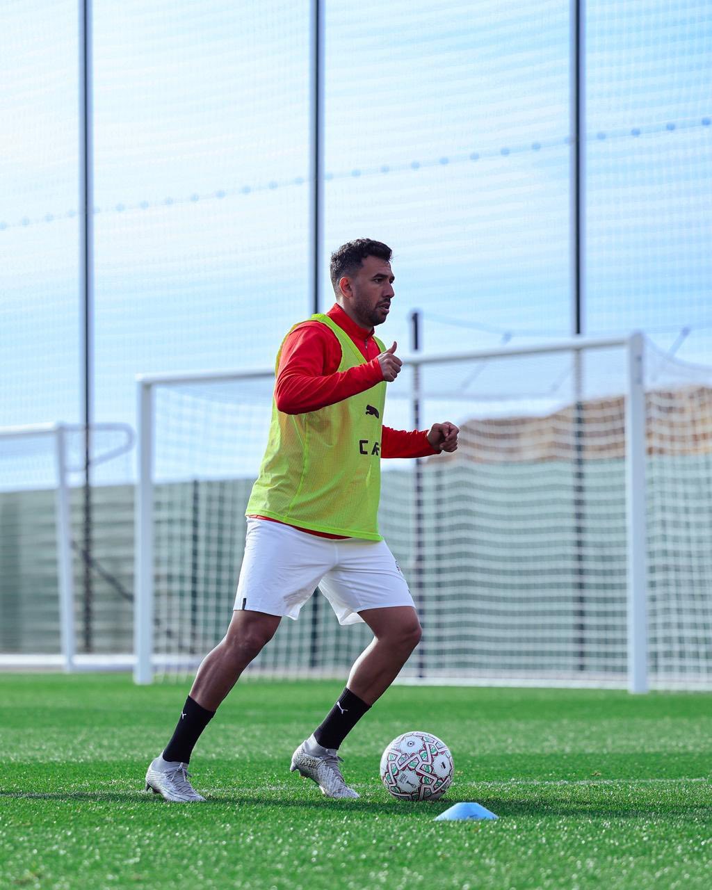 بينما أدى مهند لاشين، لاعب وسط المنتخب، تدريبات تأهيلية، استعداداً للمباراة بعد إصابته بكدمة في الضلوع خلال مباراة أنجولا.