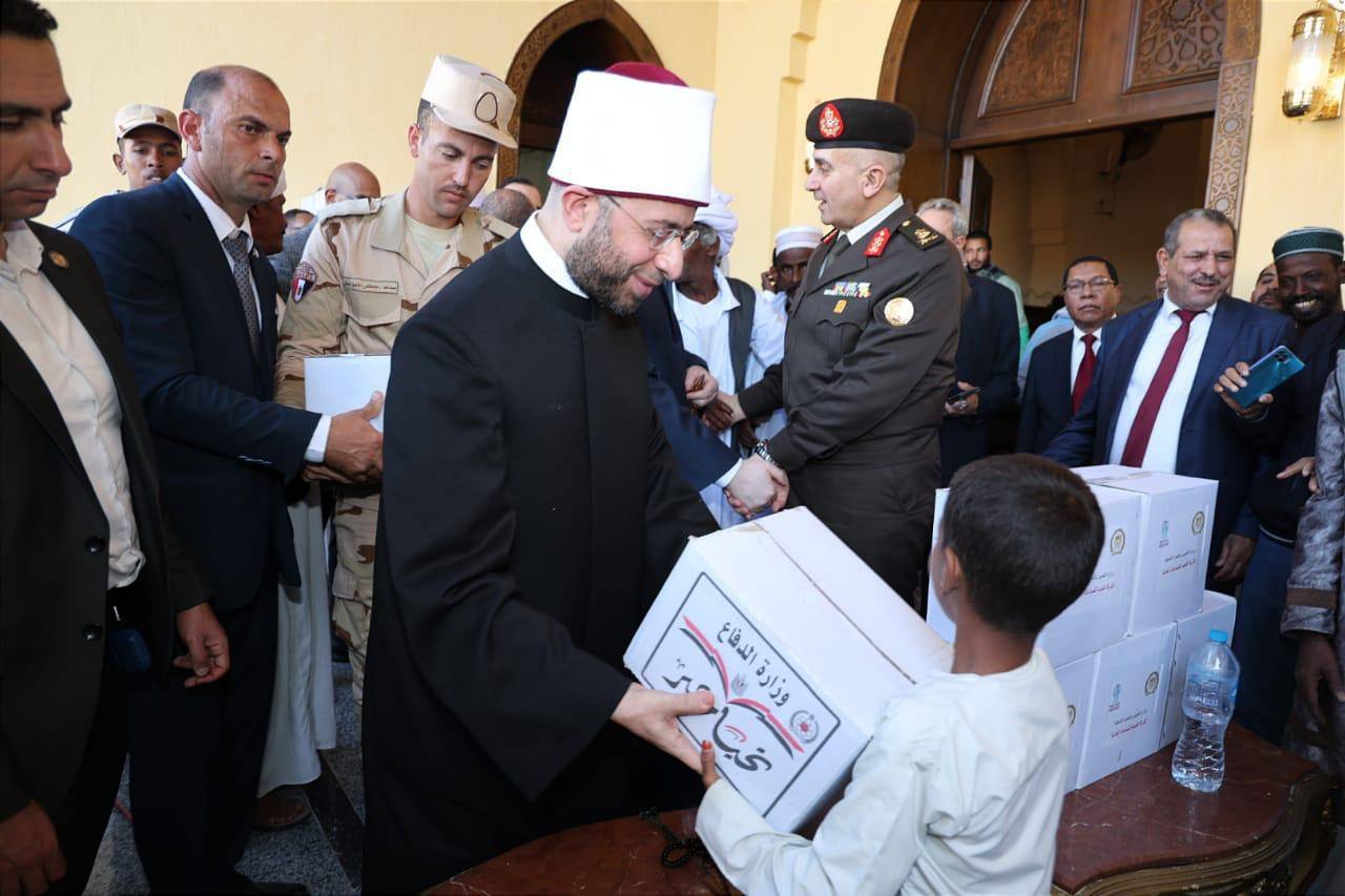 وعقب صلاة الجمعة، شارك الوزراء والقيادات في توزيع 10 آلاف كرتونة غذائية وكمية ضخمة من السلع والبطاطين وجّه رئيس الجمهورية بإهدائها من مختلف مؤسسات الدولة إلى أهالي المنطقة، دعمًا للأسر الأولى بالرعاية، وتأكيدًا لمبادئ التكافل الاجتماعي، وتخفيفًا للأعباء عن المواطنين.