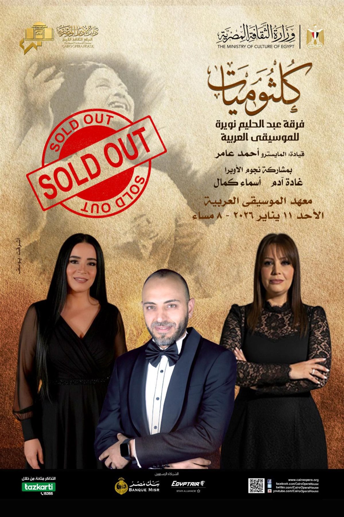 أعلنت دار الأوبرا المصرية عن نفاد تذاكر حفل "كلثوميات" المقرر إقامته على مسرح معهد الموسيقى العربية يوم الأحد 11 يناير الجاري، والذي ستقدمه فرقة عبد الحليم نويرة بقيادة المايسترو أحمد عامر، بمشاركة نجمتَي دار الأوبرا غادة آدم وأسماء كمال.
