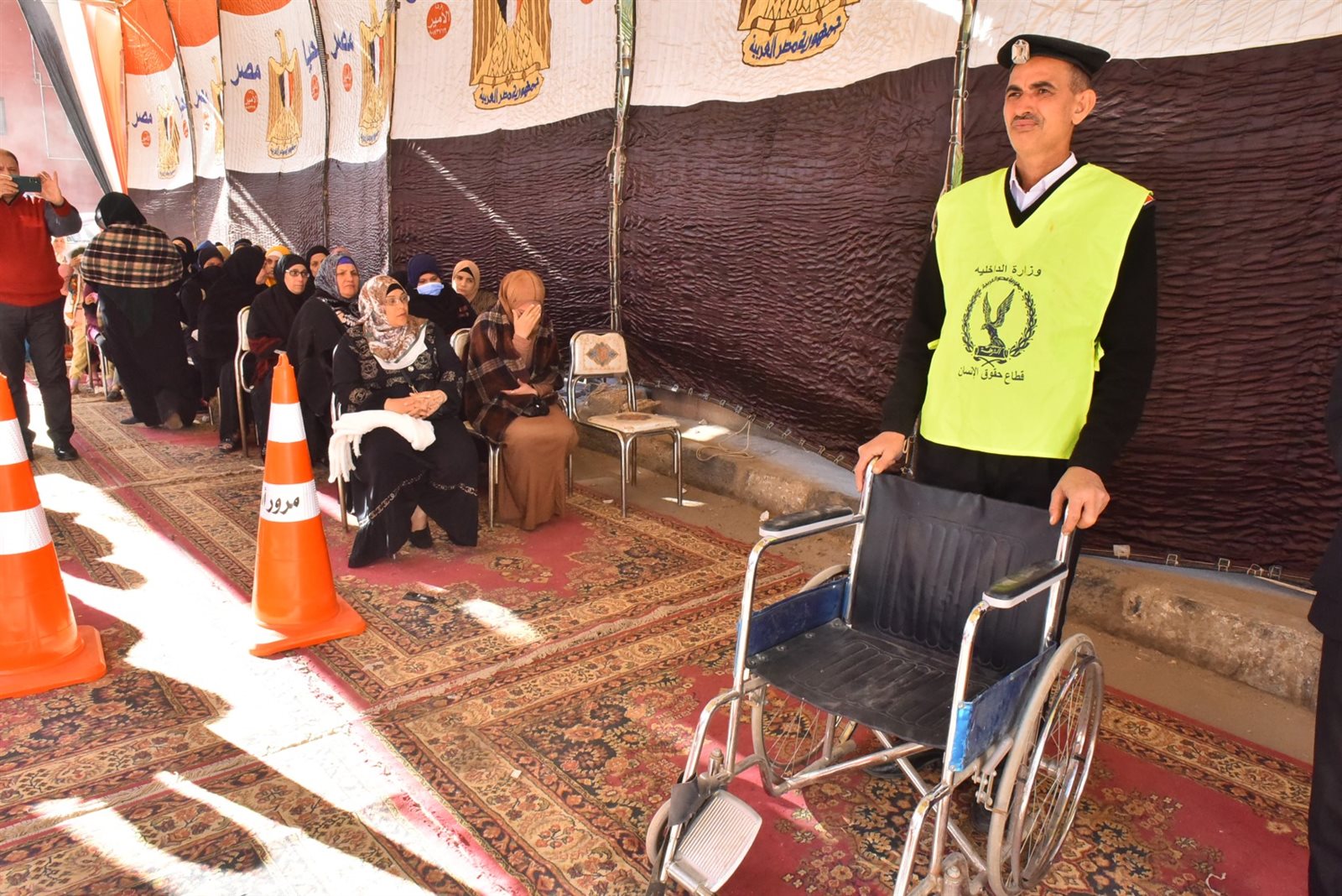 حيث تابع محافظ أسيوط إجراءات دخول الناخبين والتأكد من توافر التسهيلات اللازمة لكبار السن وذوي الهمم، إلى جانب الاطمئنان على انتظام العمل داخل اللجان وعدم وجود أية معوقات تؤثر على عملية التصويت، واطلع على مستوى التنظيم داخل المقار الانتخابية ومحيطها.