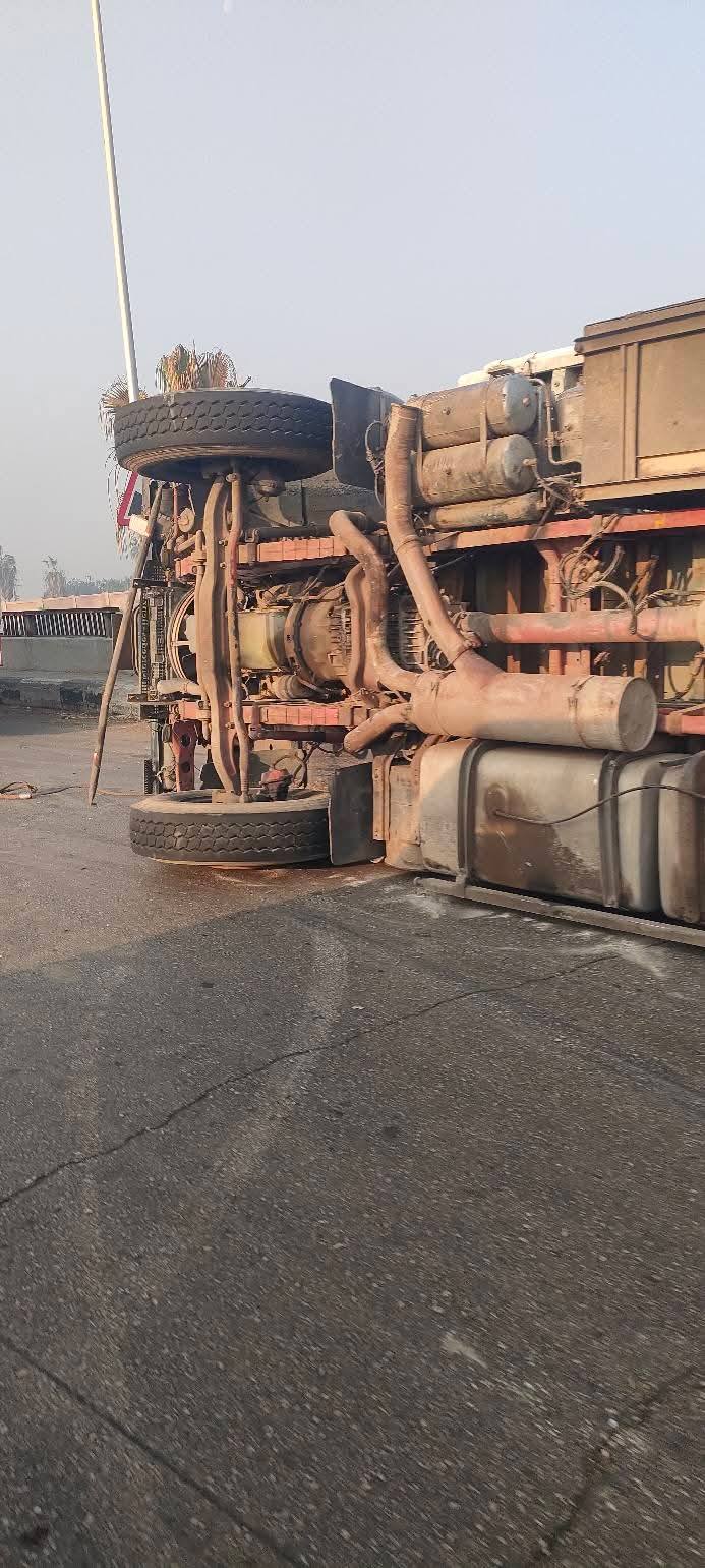 توقف حركة المرور بطريق القاهرة - الإسكندرية الزراعي لانقلاب سيارة تريلا بكوبري قها