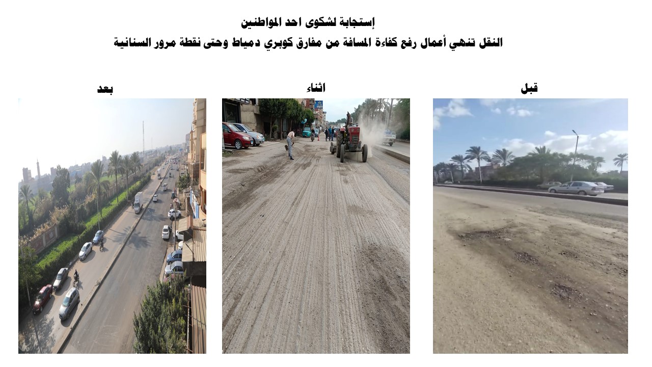 استجابة عاجلة من وزارة النقل لشكوى سوء رصف وصلة السنانية بدمياط