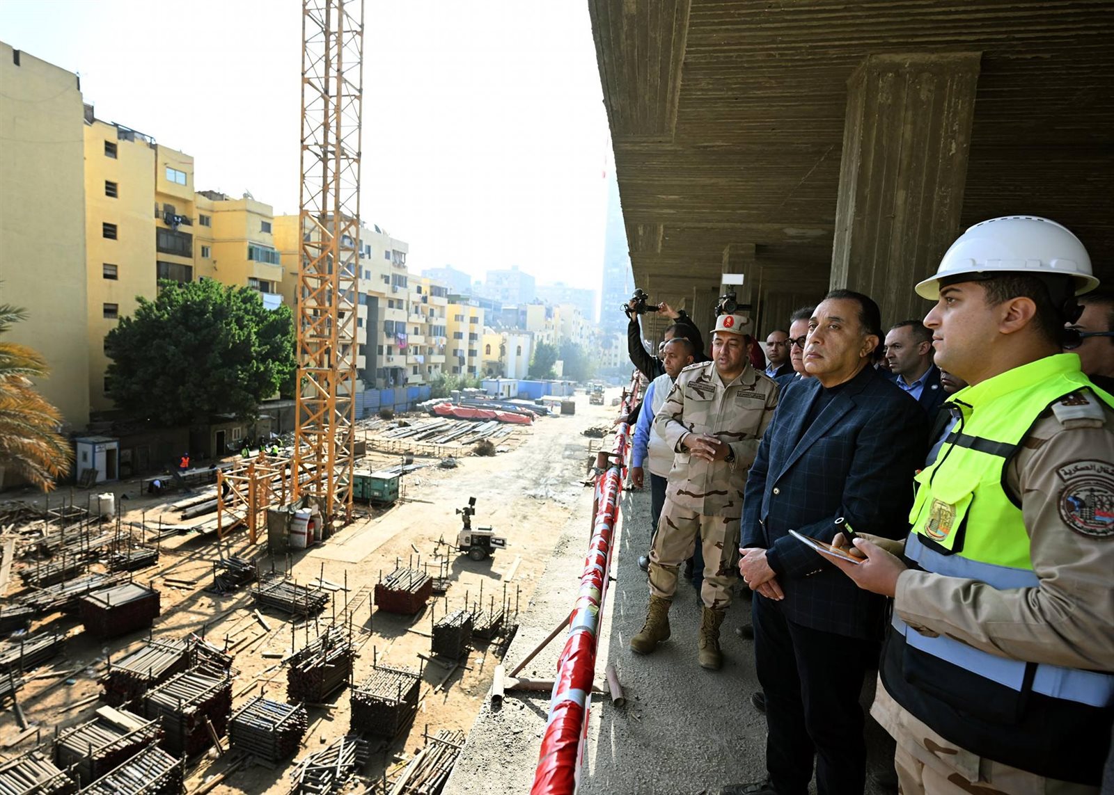 وقال مسئول الهيئة الهندسية لرئيس الوزراء: «فيما يتعلق بالموقف التنفيذي للمشروع فقد تم إحلال وتجديد شبكات البنية التحتية بما تتضمن من (كهرباء – مياه وحريق وري وخزان (3000) م3– صرف صحي ومحطة معالجة (1000) م3 –– تيار خفيف)، كما تم تنسيق الموقع العام بما يشمله من (طرق – أرصفة – بردورات – زراعات)، لافتا إلى أنه يتم تكثيف العمل للانتهاء من المشروع وفق المخطط الزمني لكل مراحله؛ حيث من المقرر الانتهاء من الهيكل الخرساني في 30 يونيو المقبل، كما سيتم الانتهاء من مبنى الجراج متعدد الطوابق في مارس المقبل، والذي يسع لانتظار 640 سيارة».
