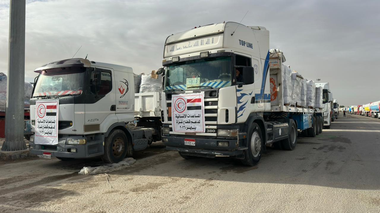 استجابة لحالة الطقس.. الهلال الأحمر المصري يواصل مد غزة بسلال غذائية ومستلزمات شتوية وإغاثية شاملة عبر قافلة «زاد العزة» 115