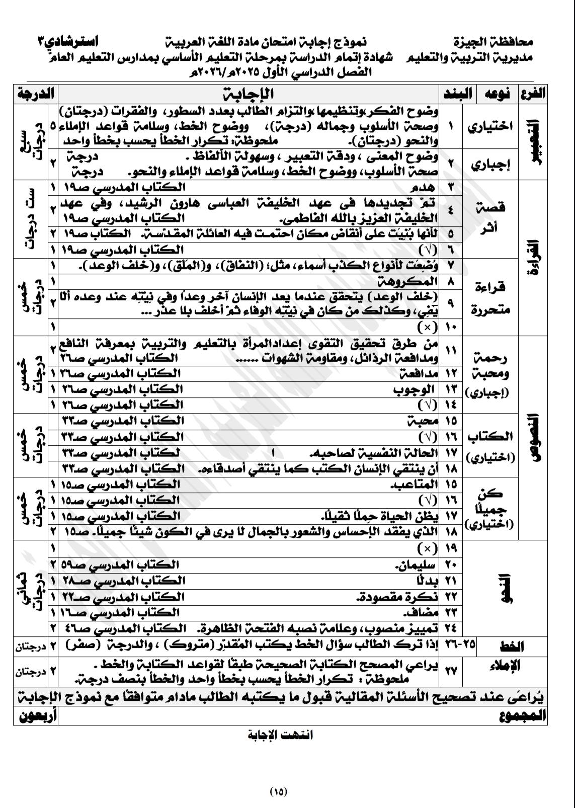 وفيما يلي النموذج الاسترشادي لامتحان مادة اللغة العربية للشهادة الإعدادية، الذي يعقد صباح غد السبت: