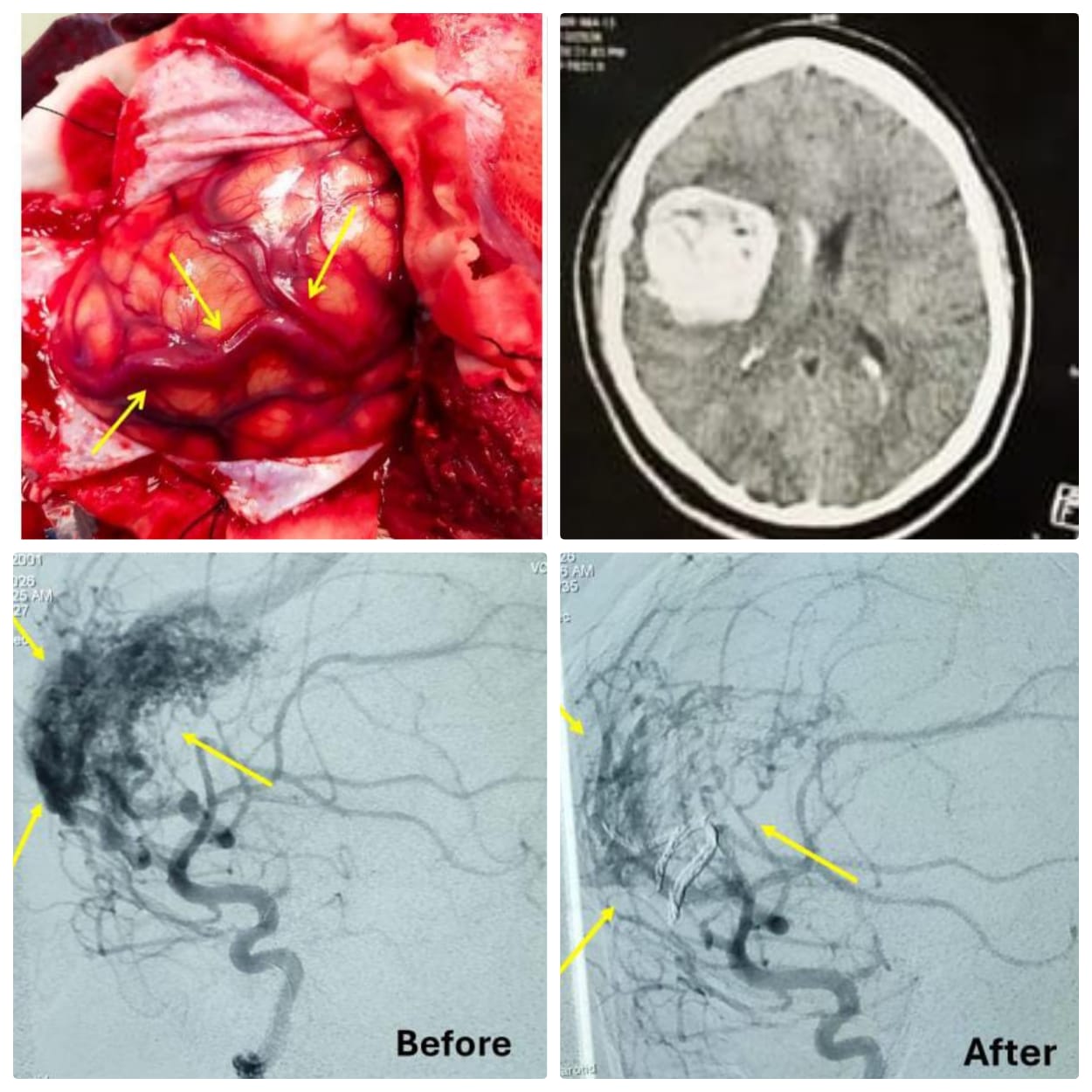 وفي غضون أقل من 24 ساعة، أجرى الفريق الطبي قسطرة مخية تشخيصية وعلاجية، تم خلالها غلق التشوه الشرياني باستخدام تقنية (Onyx embolization) بنجاح تام.