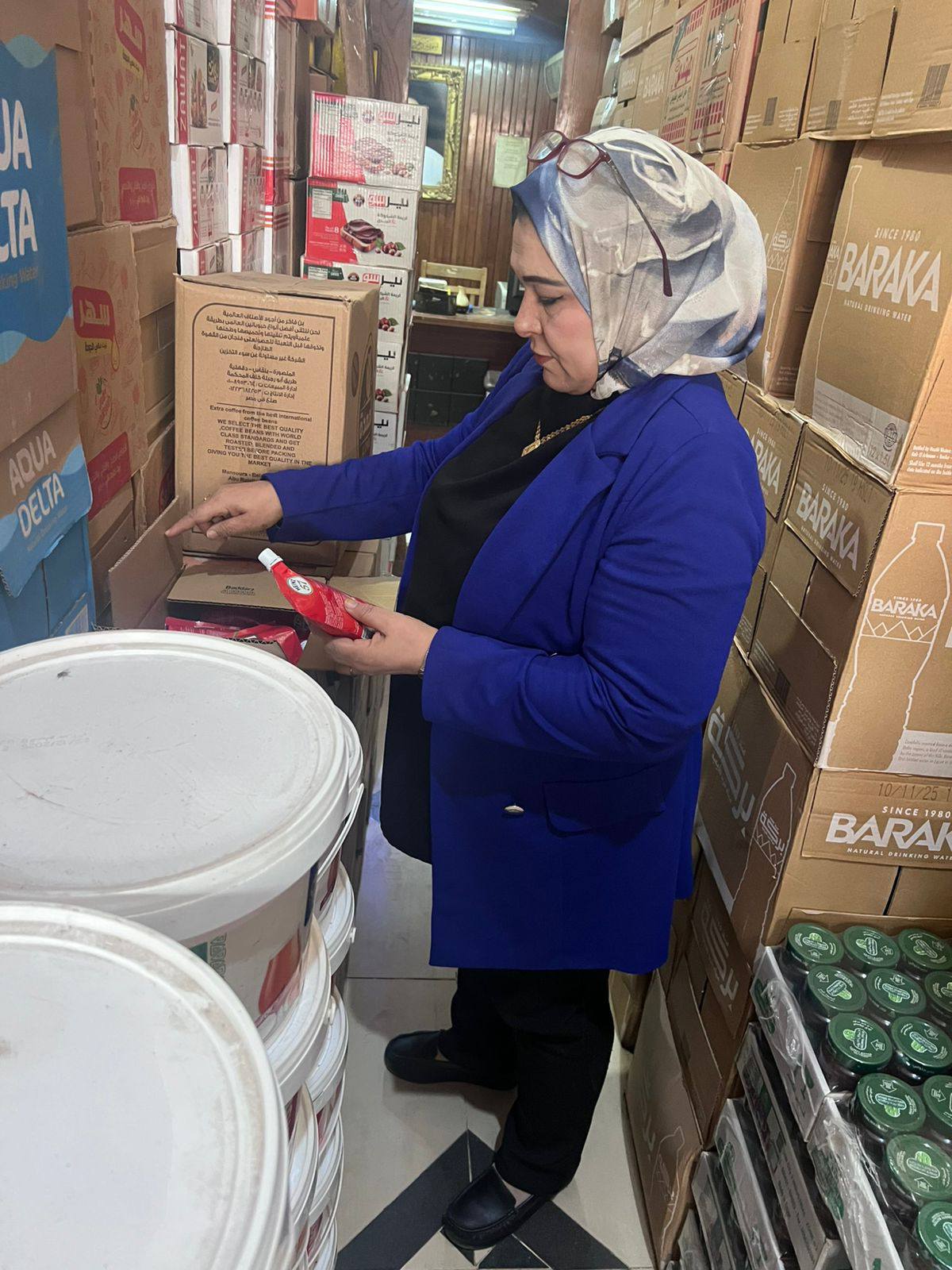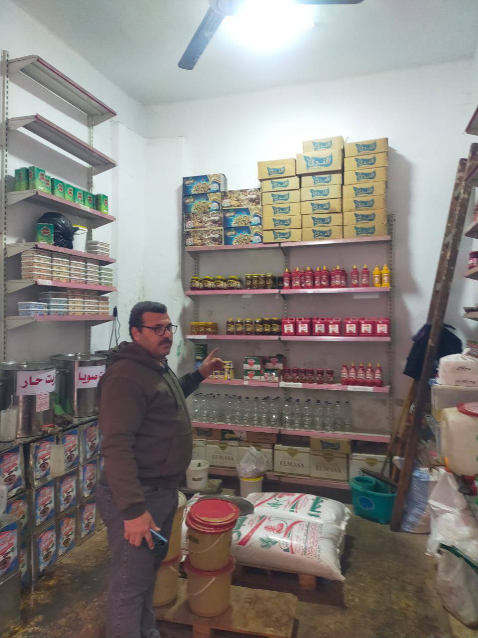 كما تم ضبط كميات كبيرة من السلع الغذائية مجهولة المصدر، من بينها 30 علبة حلويات أطفال (جيلي) بدون بيانات أو تاريخ إنتاج أو صلاحية، و250 كيلوجرام أرز، و50 بالته عصير، و100 بالته مياه معدنية، بالإضافة إلى 2 طن ونصف دقيق و550 كيلوجرام سمن نباتي، وطن ملح ونصف طن عسل أسود، إلى جانب 10 كيلوجرام زبدة مزرعة بيور، وجركن زيت طعام وزن 15 كيلوجرام، وذلك لعدم وجود أي مستندات دالة على مصدرها.