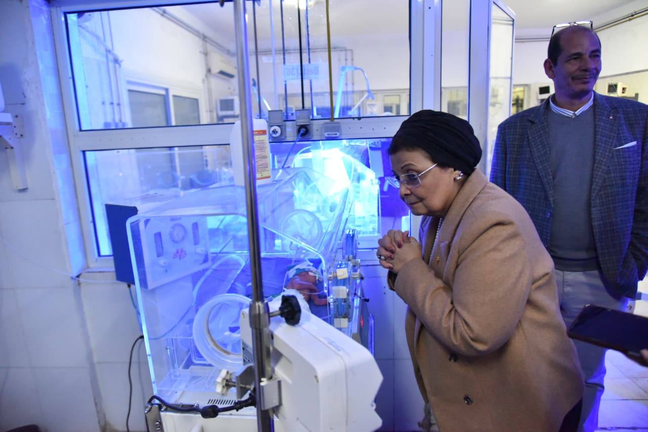 في مستشفى الفيوم العام، شددت على تحسين رعاية حديثي الولادة والمبتسرين من خلال تحديث البروتوكولات، مكافحة العدوى، ضبط تشبع الأكسجين (90-95%)، دعم الحضانات بالأجهزة والمستلزمات، تعزيز الرضاعة الطبيعية وأسلوب «الجلد للجلد». وفي قسم النساء والتوليد، أكدت ضرورة تركيب وسائل تنظيم الأسرة فور الولادة، التوسع في الوسائل طويلة المدى، الالتزام بتسجيل البارتوجرام وتصنيف روبسون لضبط القيصريات، وتوفير حقائب إنعاش الوليد وأدوات قياس دقيقة.