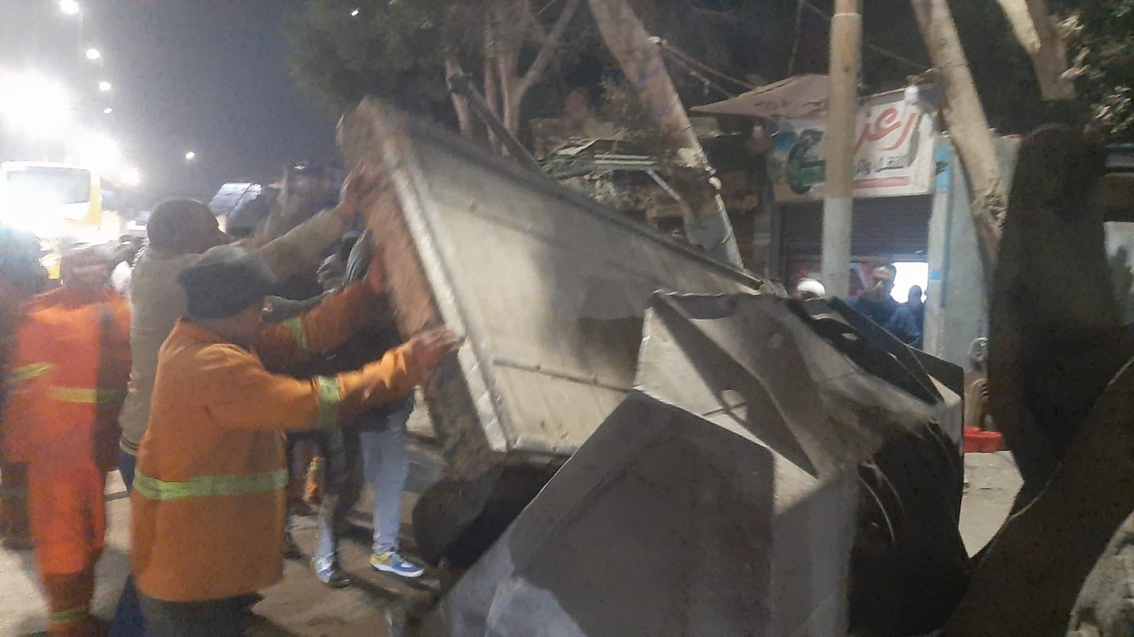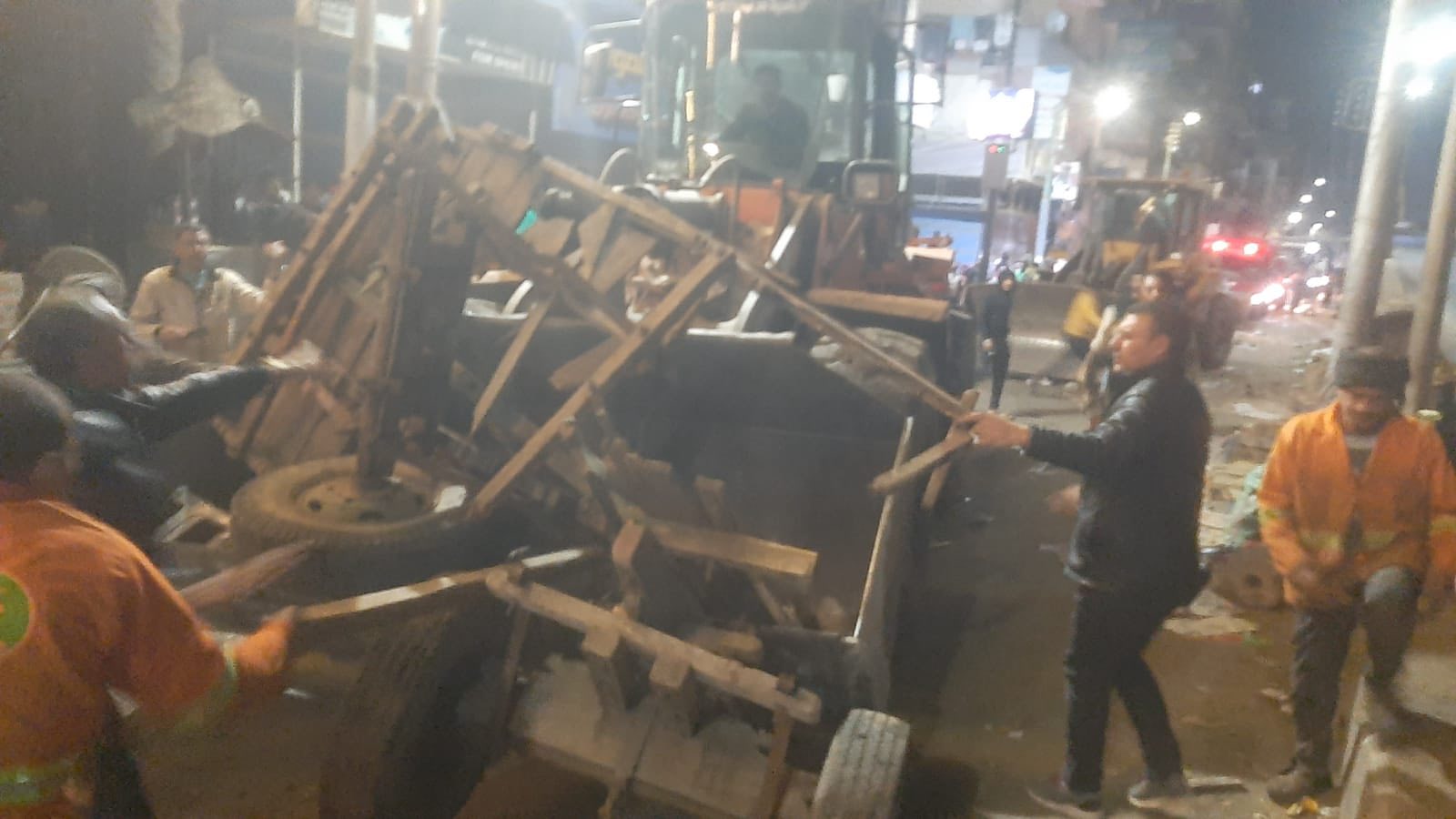 لإعادة الانضباط للشارع.. حملة ليلية مكبرة لرفع الإشغالات بمنطقة وابور الثلج بمدينة بنها