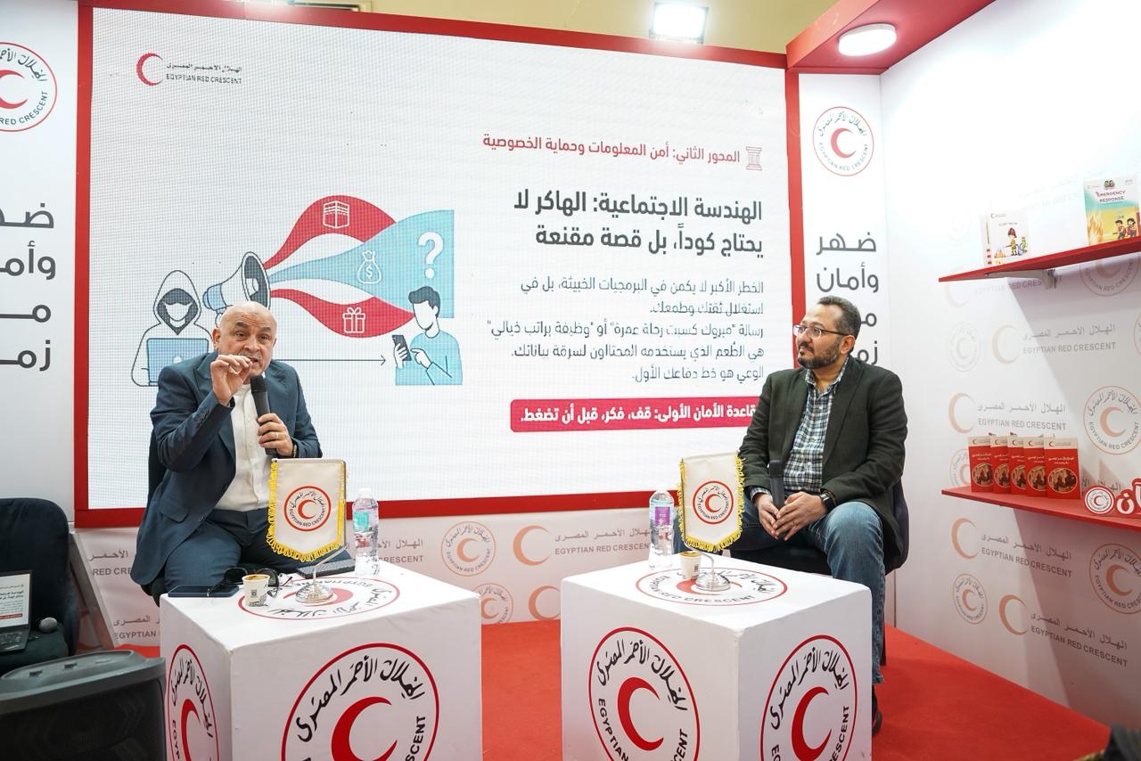 ومن هذا المنطلق، نظم الهلال الأحمر المصري جلسة حوارية بعنوان «الإسعافات الأولية الرقمية - الحماية الرقمية للأفراد والعائلات من مخاطر الفضاء الإلكتروني»، بمشاركة اللواء دكتور عماد الدين حلمي مستشار وخبير تقني في شركة تكنولوجيا المعلومات والاتصالات؛ المدير التنفيذي السابق لأمن المعلومات في الهيئة القومية لتنظيم الاتصالات (NTRA) مصر، وحاوره المهندس ماجد رشدي استشاري التحول الرقمي ونظم المعلومات والأمن بالهلال الأحمر المصري.