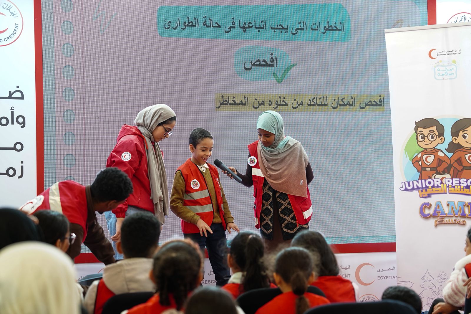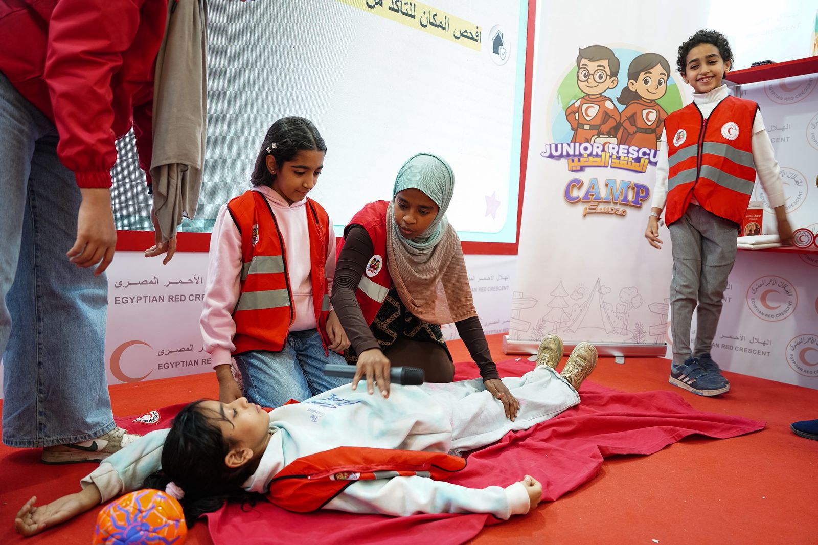 كما شهد الجناح عرضًا تفاعليًا مباشرًا بعنوان «أنقذ حياة»، للتعريف بأساسيات الإسعافات الأولية، وأخر حول الإسعافات الأولية النفسية، وتنفيذ برنامج «المنقذ الصغير»، وأنشطة «مساحة أمان للأطفال»، بالإضافة إلى مبادرة «روح وجسد» الموجهة للمراهقين والشباب.