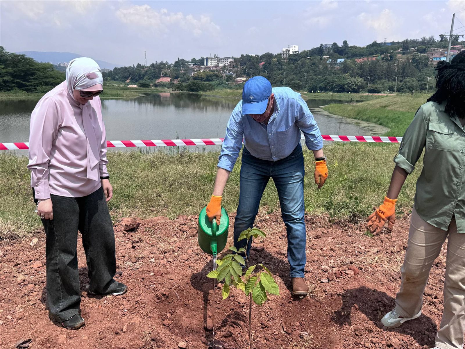 وخلال المشاركة، قام الدكتور هاني سويلم، والسفيرة حنان شاهين، وعدد من أعضاء الوفد المصري بزراعة عدد من الأشجار في لفتة رمزية تعكس الاهتمام المشترك بحماية البيئة وتعزيز الحلول القائمة على الطبيعة، وبما يؤكد على عمق العلاقات المصرية- الرواندية وحرص الجانبين على تعزيز التعاون الإيجابي وتبادل الخبرات في المجالات ذات الاهتمام المشترك .