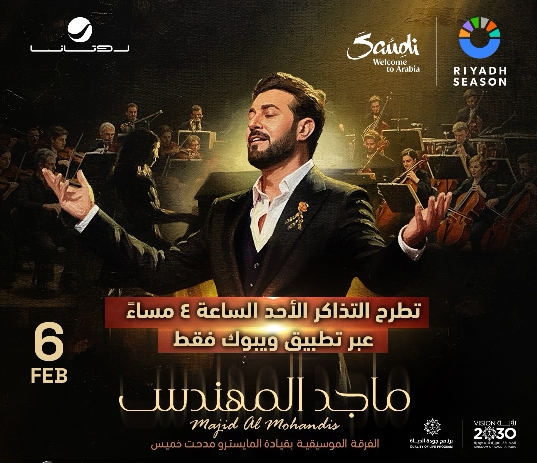 يستعد الفنان ماجد المهندس، لإحياء حفل غنائي على مسرح محمد عبده أرينا، يوم 6 فبراير الجاري، ضمن سلسلة حفلات موسم الرياض بالمملكة العربية السعودية.