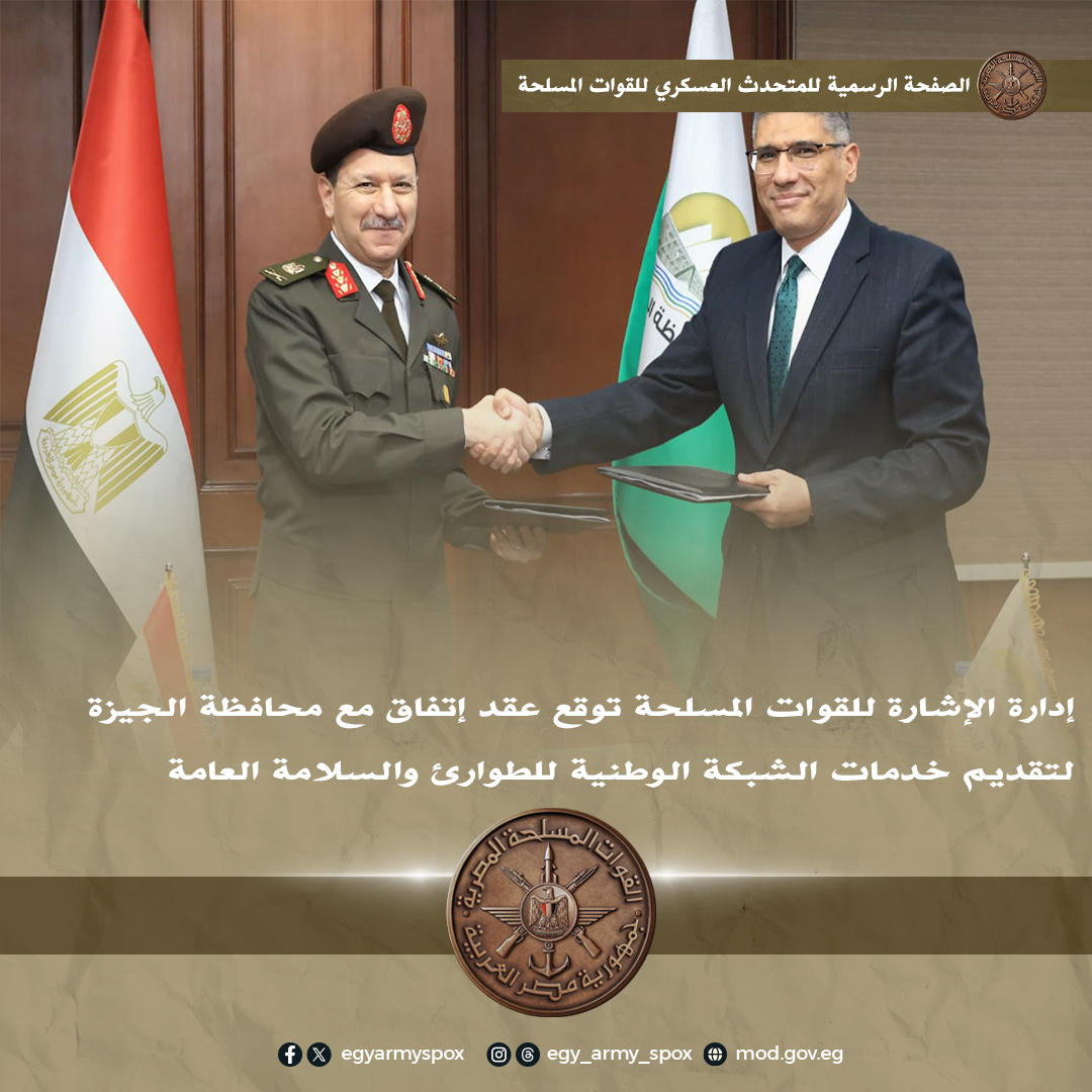 إدارة الإشارة للقوات المسلحة توقع عقد اتفاق مع محافظة الجيزة لتقديم خدمات الشبكة الوطنية للطوارئ