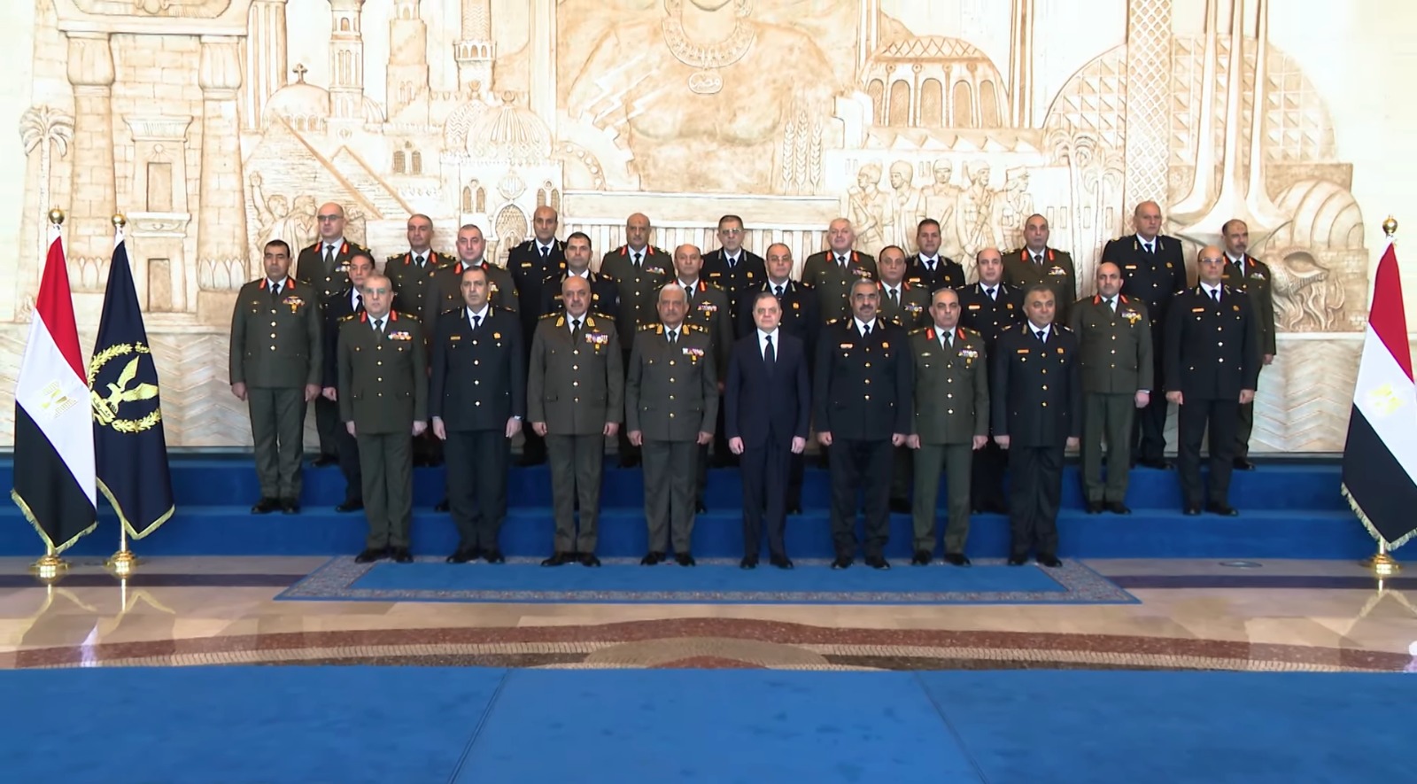 استقبل اللواء محمود توفيق وزير الداخلية بمقر وزارة الداخلية الفريق أول عبدالمجيد صقر القائد العام للقوات المسلحة وزير الدفاع والإنتاج الحربي والفريق أحمد خليفة - رئيس اركان حرب القوات المسلحة ووفدا من كبار قادة القوات المسلحة لتقديم التهنئة للوزير وهيئة الشرطة بمناسبة الاحتفال بالذكرى الرابعة والسبعين لعيد الشرطة.