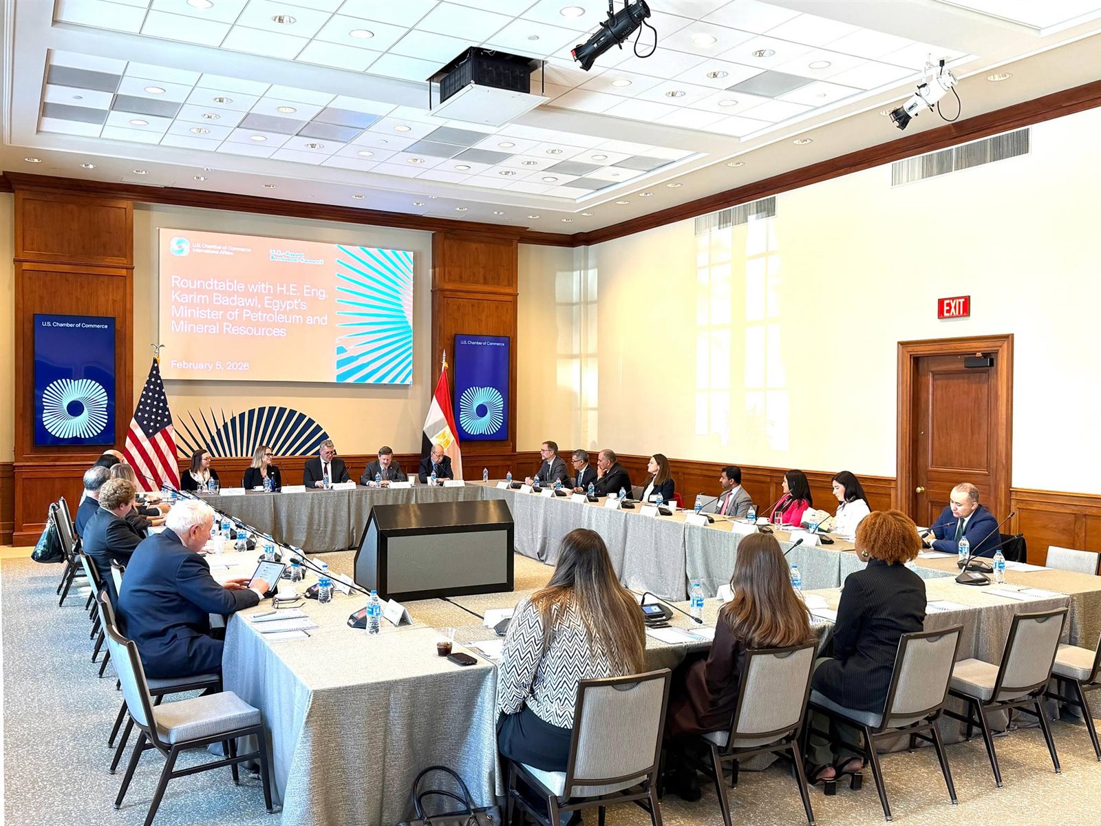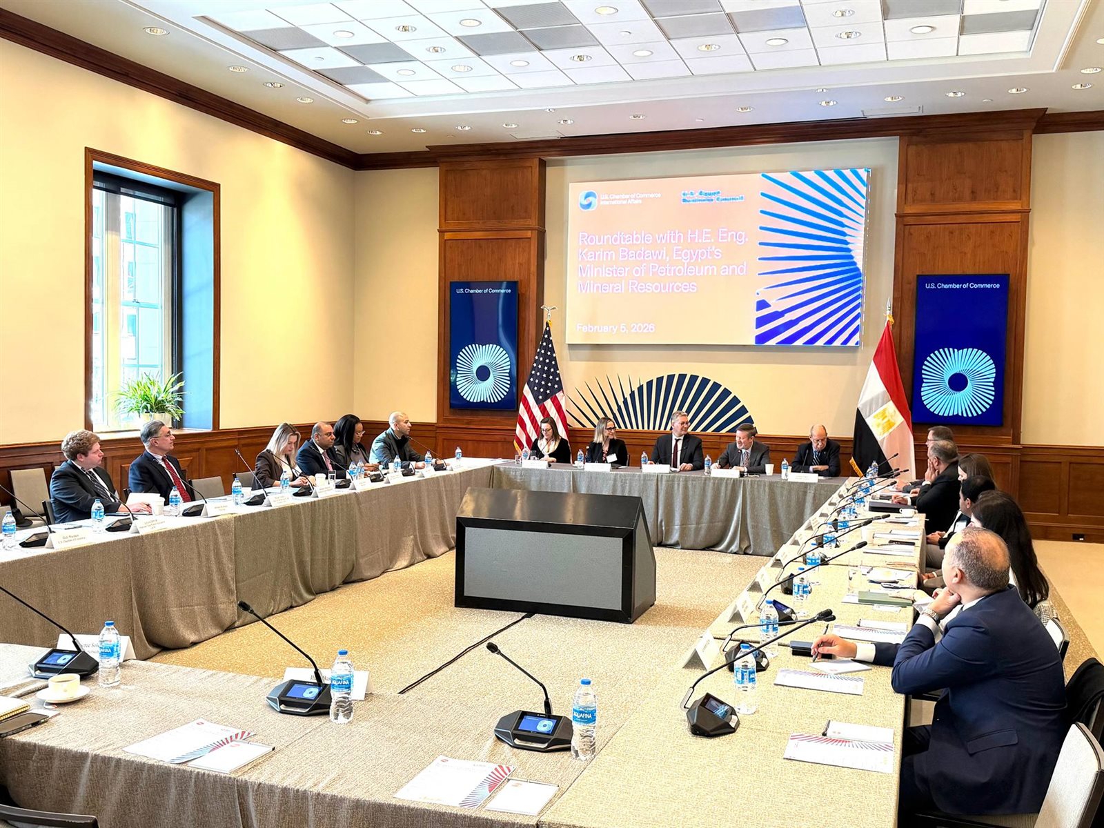 عقد المهندس كريم بدوي وزير البترول والثروة المعدنية، خلال زيارته إلى واشنطن، لقاء المائدة المستديرة الموسع بمقر غرفة التجارة الأمريكية مع ممثلي مجتمع الأعمال الأمريكي من شركات البترول والطاقة، وذلك في إطار الجهود المتواصلة للوزارة لتعزيز الشراكات وجذب استثمارات جديدة للقطاع.