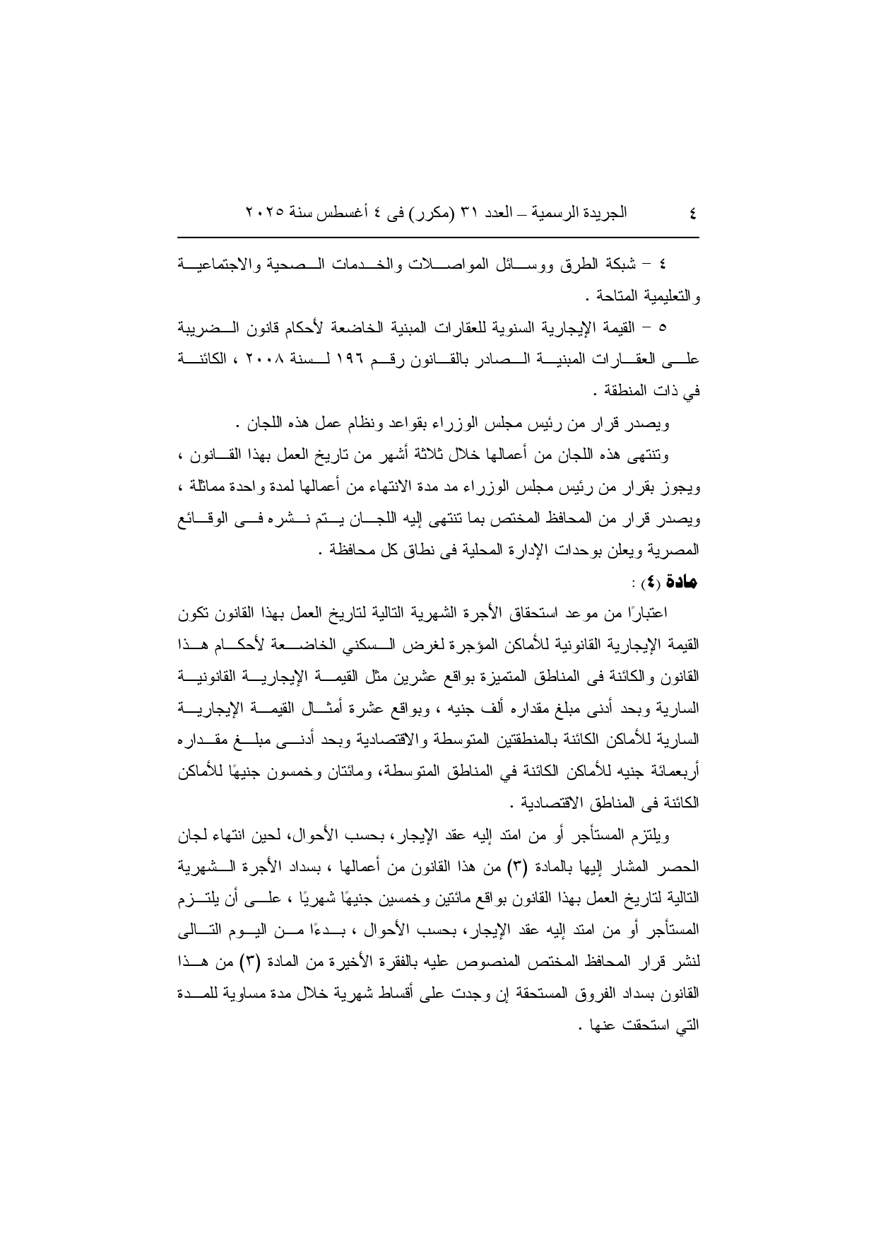 على أن تنتهي عقود الإيجار السكنية نهائيًا في 4 أغسطس 2032، والوحدات غير السكنية في 4 أغسطس 2030.