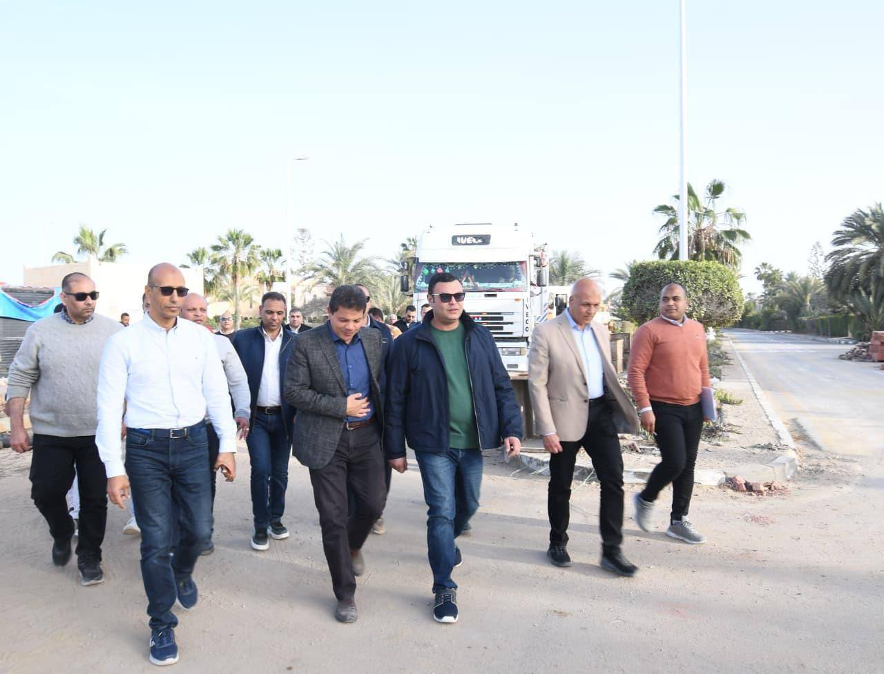 كما تفقد الشربيني، ومرافقوه، أعمال تطوير ورفع كفاءة الطريق الرئيسي بمدخل مارينا 5 بطول 2 كم، وأعمال رفع كفاءة منطقة السوق التجارية.