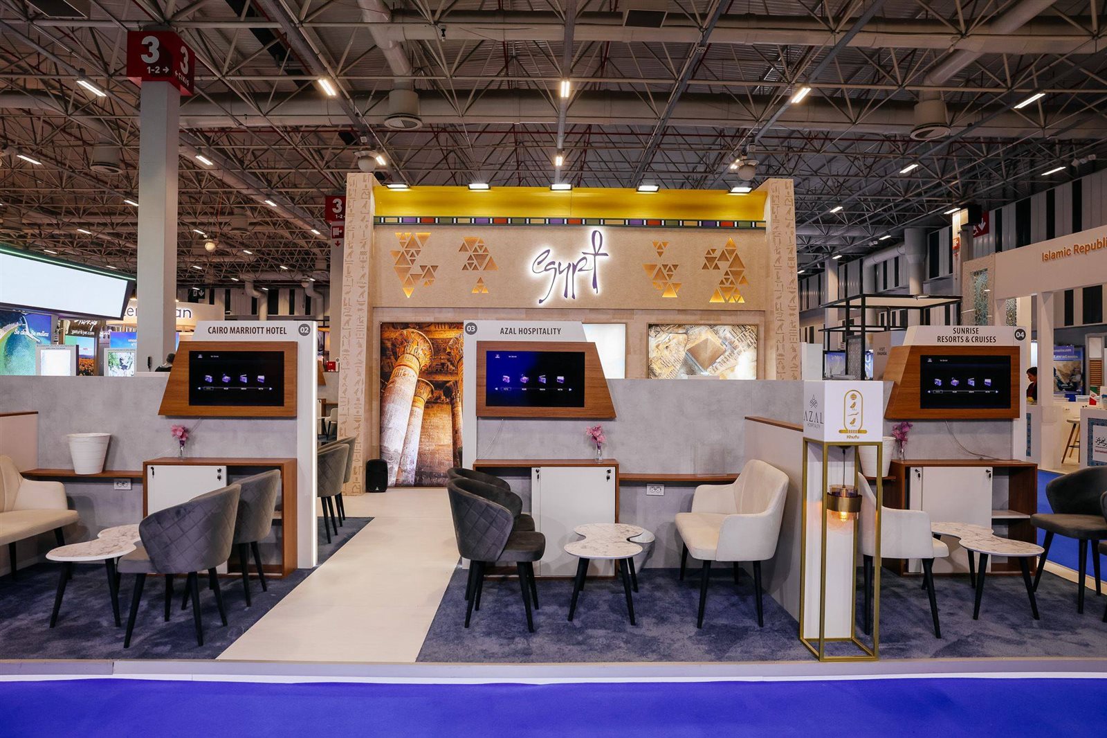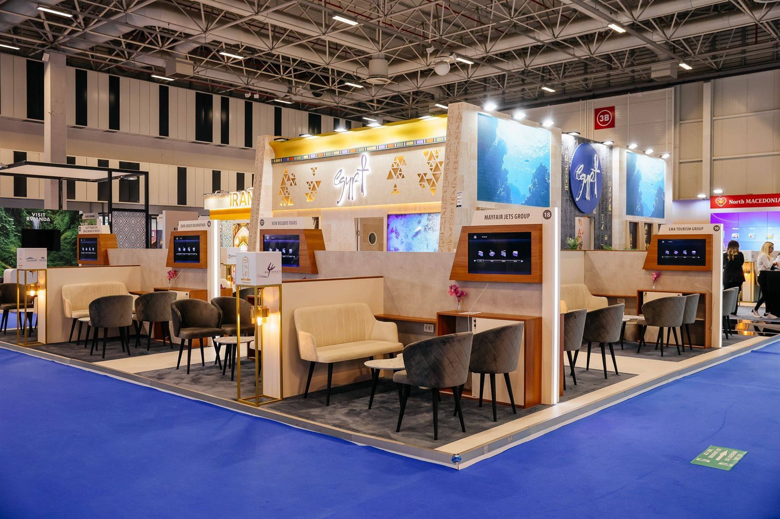 جدير بالذكر أن الجناح المصري المشارك بالمعرض السياحي الدولي EMITT تبلغ مساحته، هذا العام، 200 متر مربع، وقد جاء بتصميم فرعوني فريد يعكس عراقة الحضارة المصرية، ويضم الجناح قاعة مخصصة لعقد الاجتماعات مع كبار الزوار، ومنطقة مخصصة لتقديم المشروبات والأطعمة الخفيفة لزائريه، كما يضم عدداً من الشاشات الرقمية التي تعرض الأفلام الترويجية للمقصد السياحي المصري وما يتميز به من منتجات ووجهات سياحية متنوعة ولا سيما المتحف المصري الكبير الذي يعد أحدث وأبرز الوجهات السياحية التي تحظي باهتمام واسع على المستوى العالمي، كما تم الاستعانة بفنانة متخصصة في رسم الحناء، طوال أيام المعرض، لإضفاء طابع ثقافي وتراثي مميز على الجناح