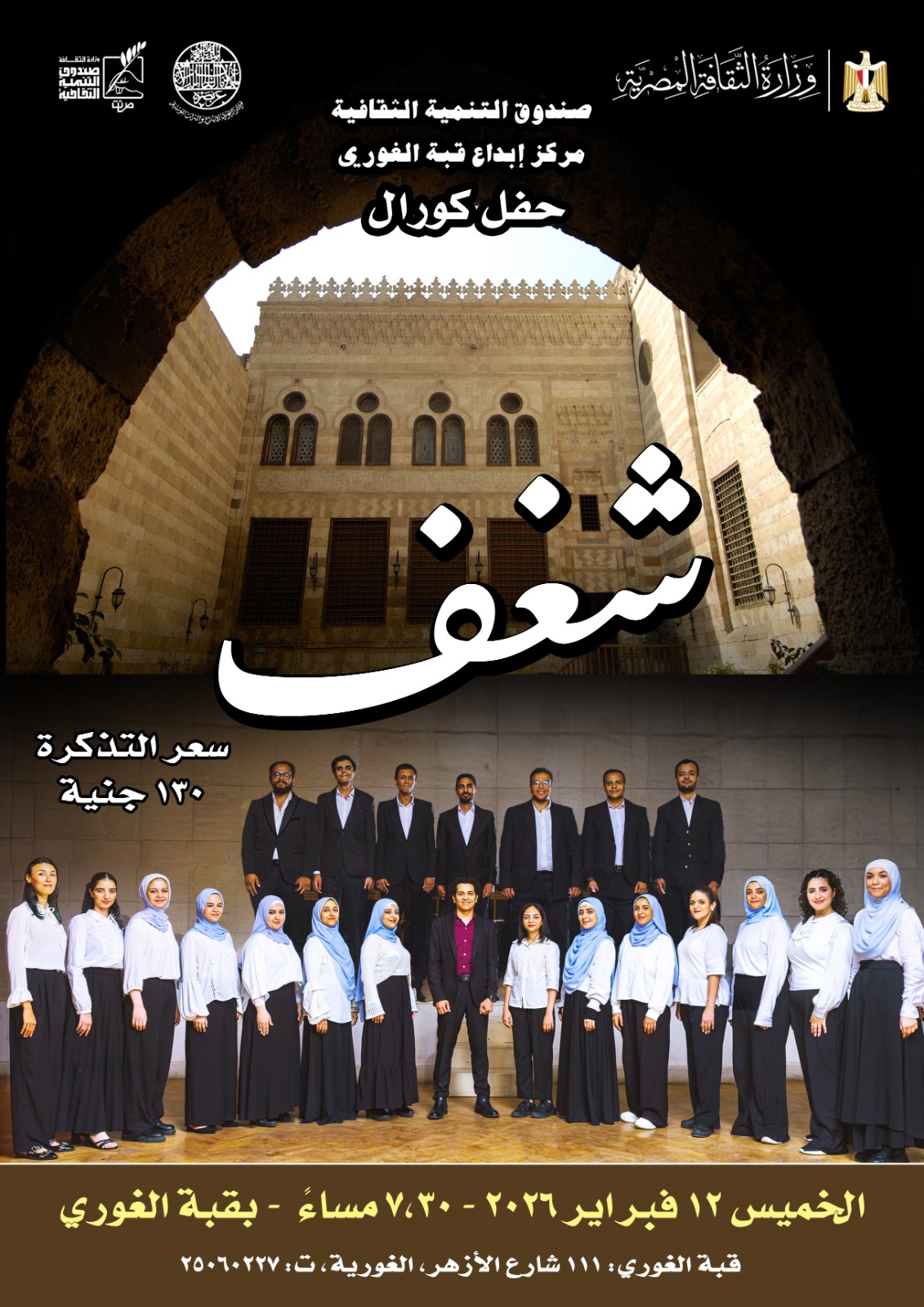 يقيم مركز إبداع قبة الغوري بشارع الأزهر – التابع لصندوق التنمية الثقافية – حفلًا جديدًا لكورال «شغف»، وذلك يوم الخميس المقبل، في تمام الساعة السابعة والنصف مساءً.