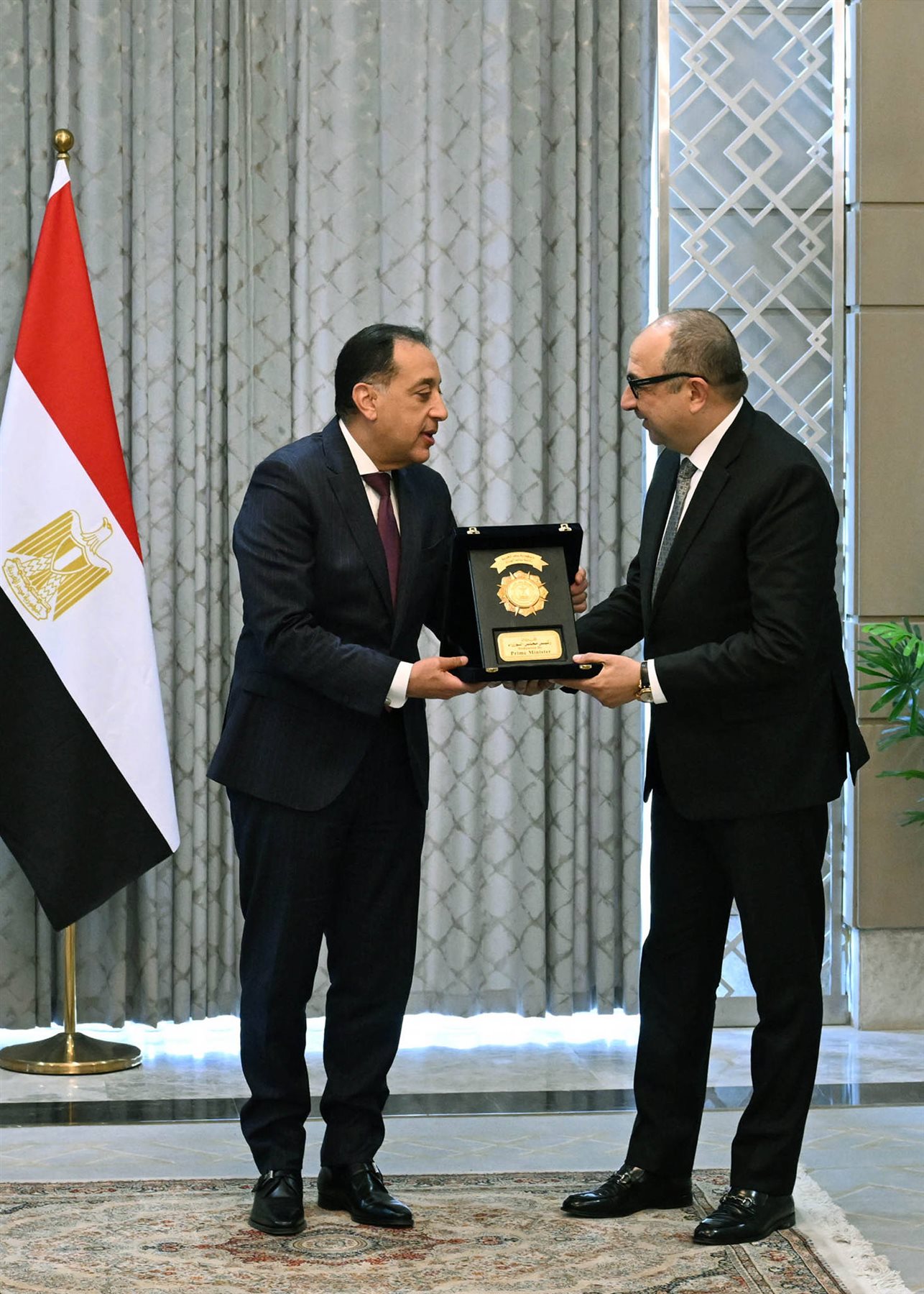 قبل انعقاد أول اجتماع للحكومة بتشكيلها الجديد، استقبل الدكتور مصطفى مدبولي، رئيس مجلس الوزراء، صباح اليوم، بمقر الحكومة بالعاصمة الجديدة، الوزراء السابقين الذين انتهت مهامهم بموجب قرار رئيس الجمهورية رقم 75 لسنة 2026 بشأن التعديل الوزاري الأخير؛ حيث قام بتسليم كلٍ منهم درع تكريم تقديرًا لجهودهم خلال فترة توليهم المسئولية، وذلك بحضور نظرائهم من الوزراء الجدد.