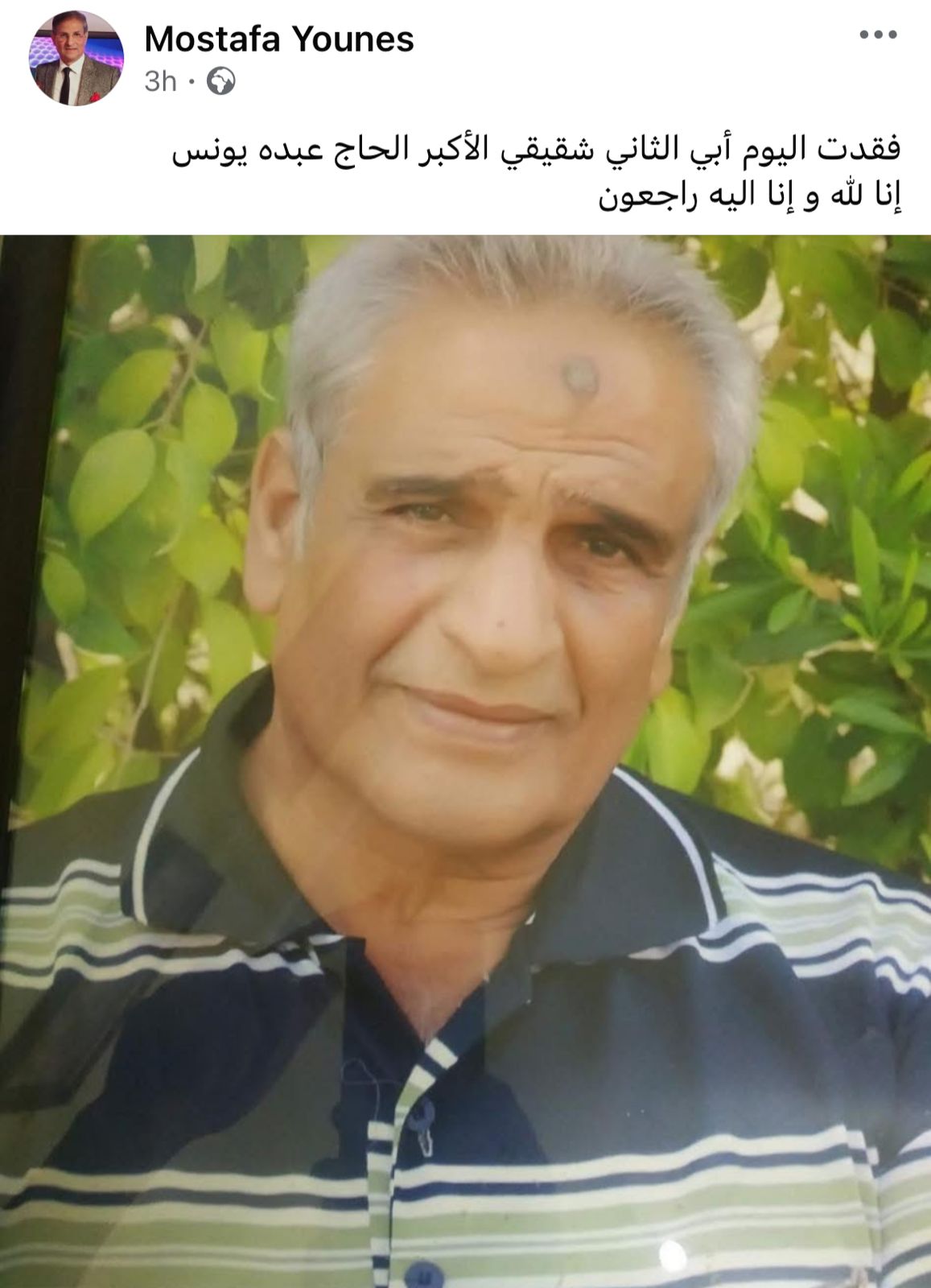 وكان مصطفى يونس قد نشر عبر حسابه الرسمي على فيسبوك: “فقدت اليوم أبي الثاني شقيقي الأكبر الحاج عبده يونس، لله وإنا لله راجعون”.