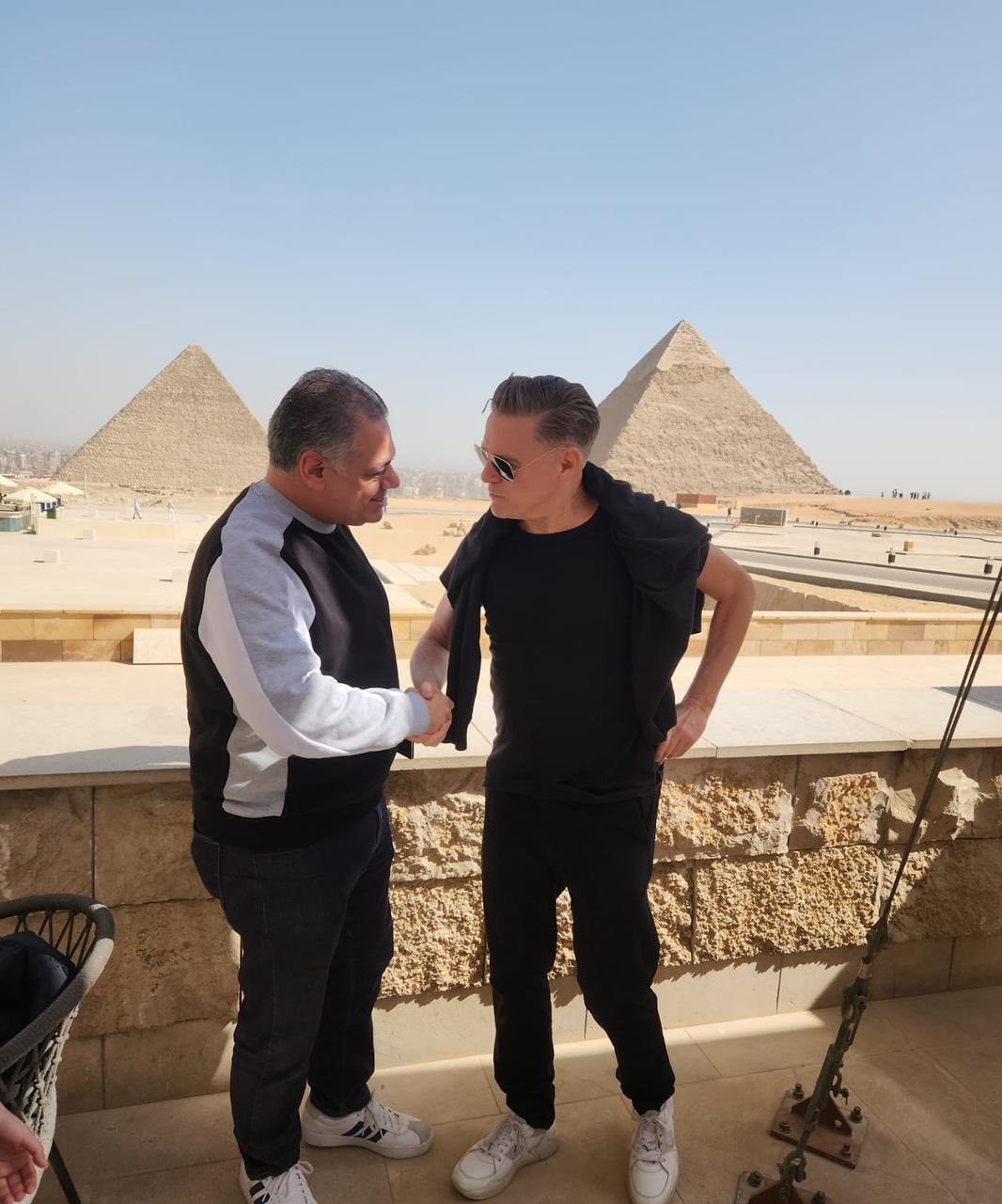 وتضمنت الجولة زيارة الهرم الأكبر من الداخل، حيث أعرب الفنان عن انبهاره بعظمة البناء ودقة التصميم الهندسي الذي يجسد عبقرية المصريين القدماء.