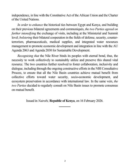 صدر في نيروبي، جمهورية كينيا، في 16 فبراير 2026.